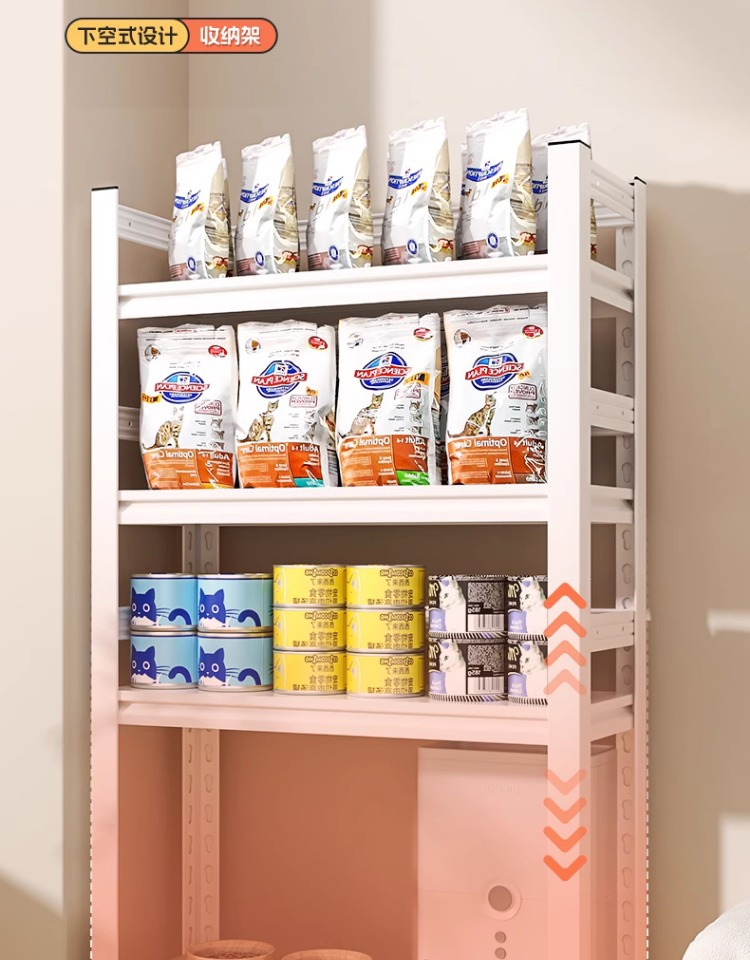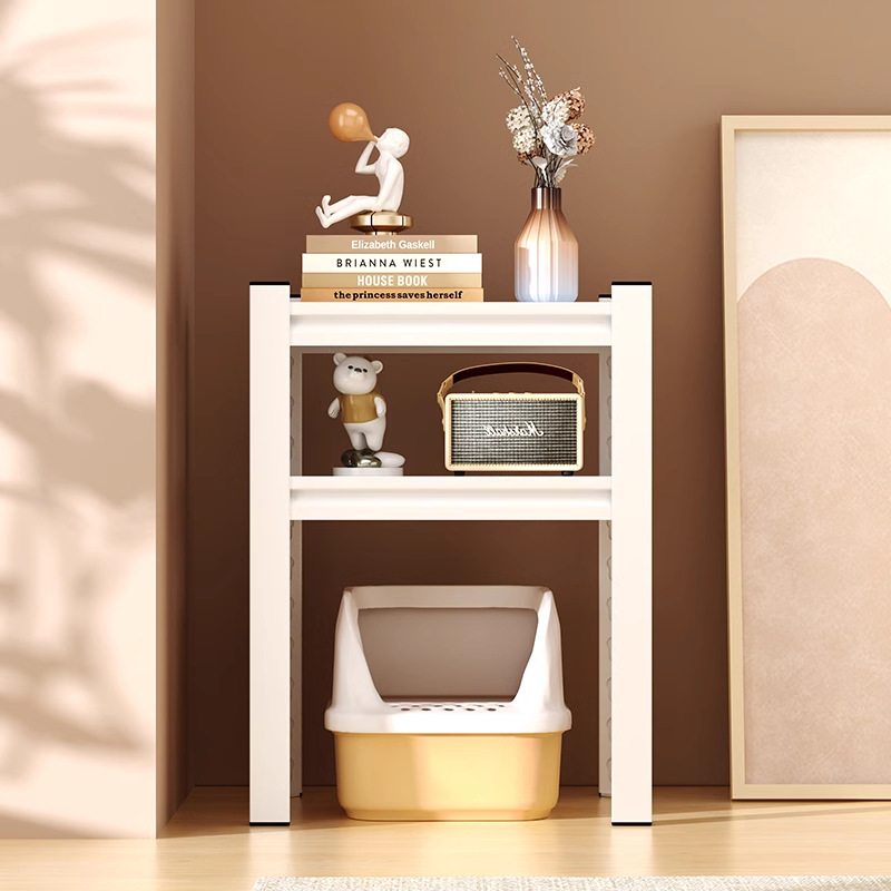 고양이 쓰레기 상자 위의 저장 랙 애완 동물 용품 저장 랙 낮은 빈 저장 랙 강철 공급 기계 고양이 캔 랙스토어 가기