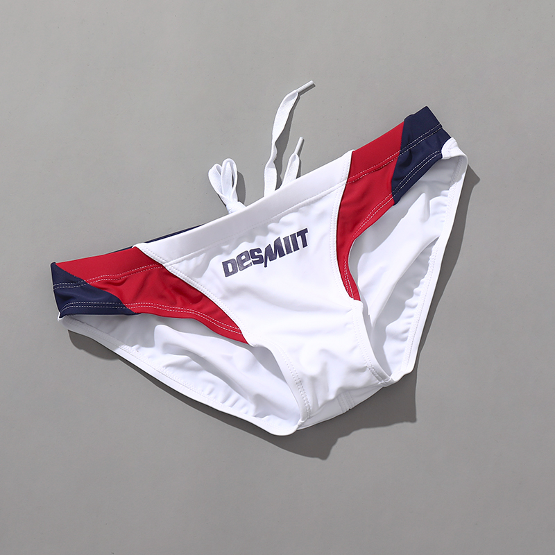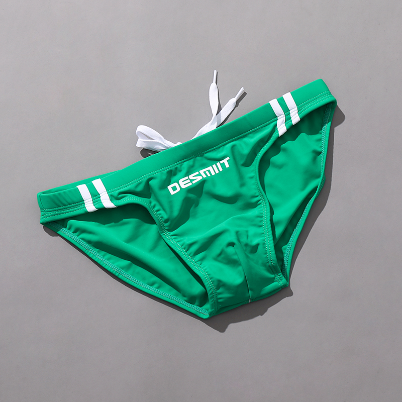 수영 트렁크 남자 삼각형 패션 컬러 매칭 해변 수영장 수영장 배수 라인 테더 빠른 건조 타이트한 수영 트렁크