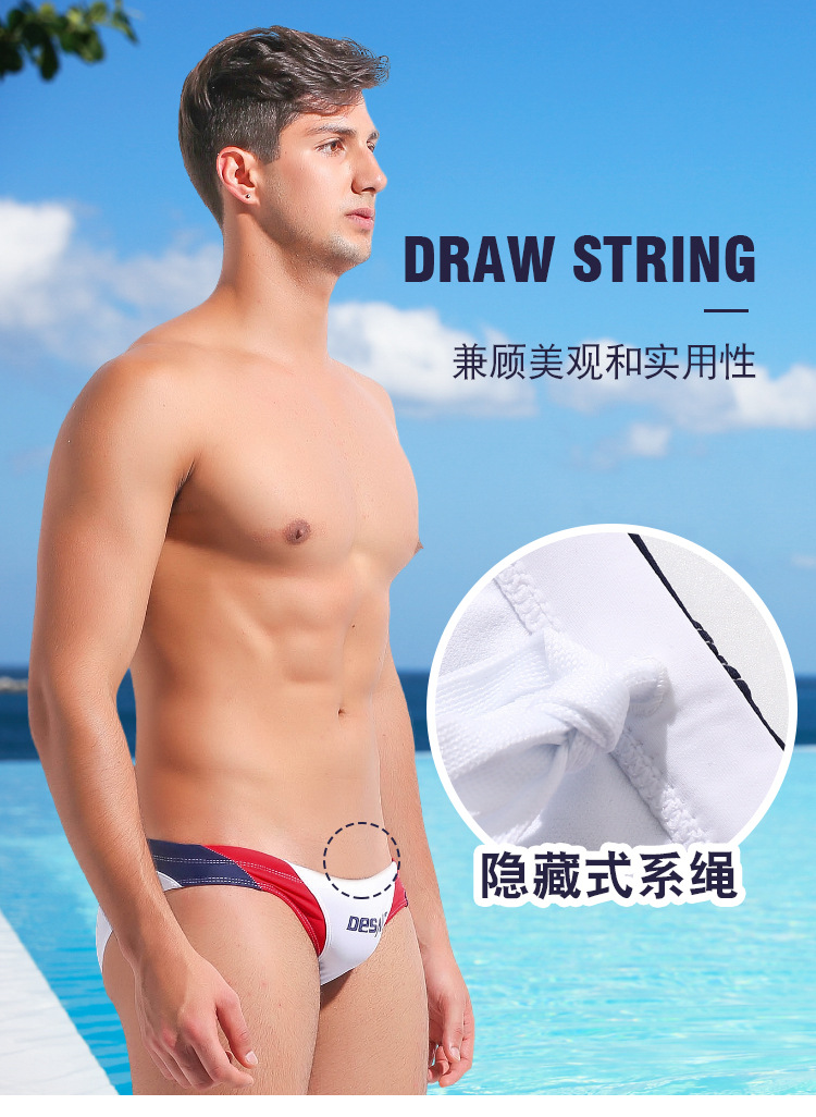 수영 트렁크 남자 삼각형 패션 컬러 매칭 해변 수영장 수영장 배수 라인 테더 빠른 건조 타이트한 수영 트렁크스토어 가기