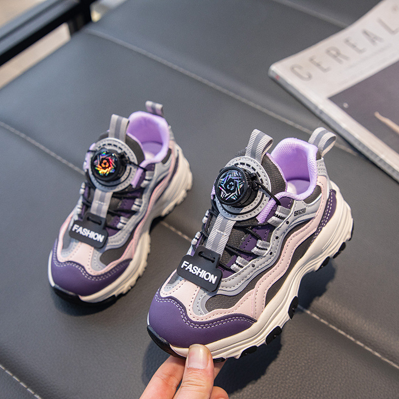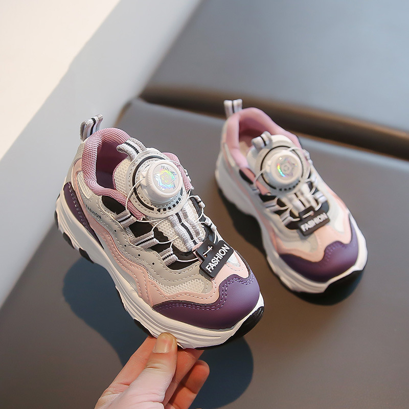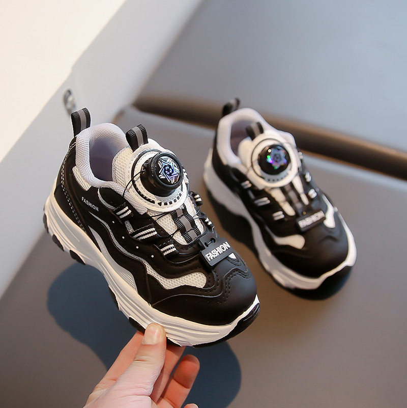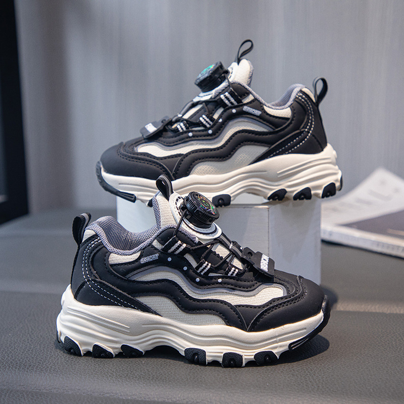 儿童2024年春季新款运动鞋春秋舒适中大童老爹鞋旋转纽拼色潮流童