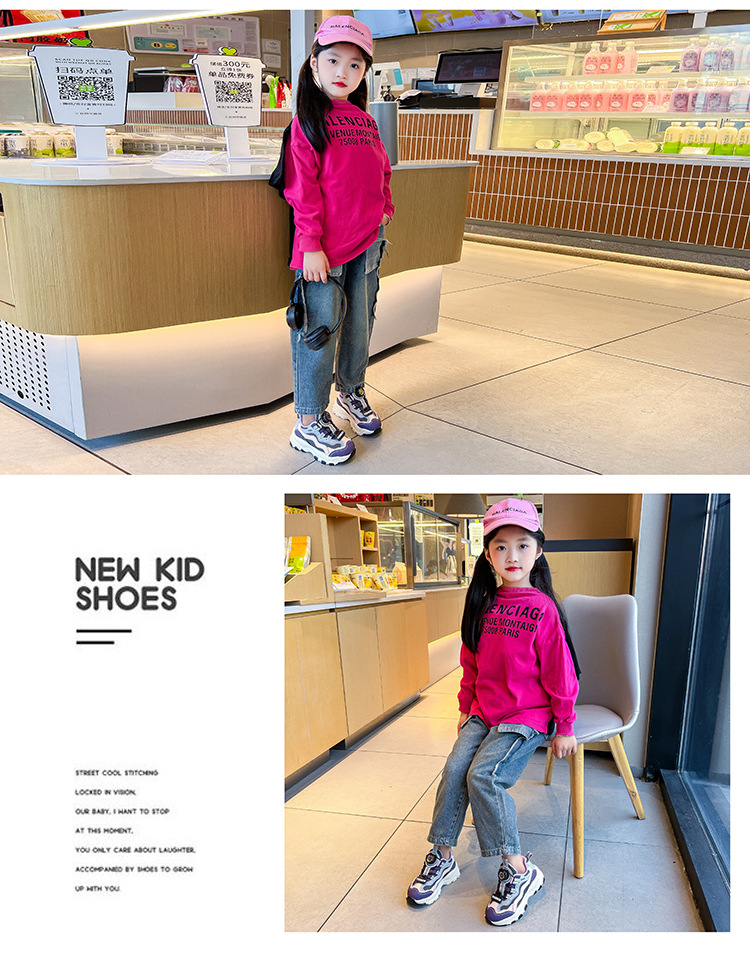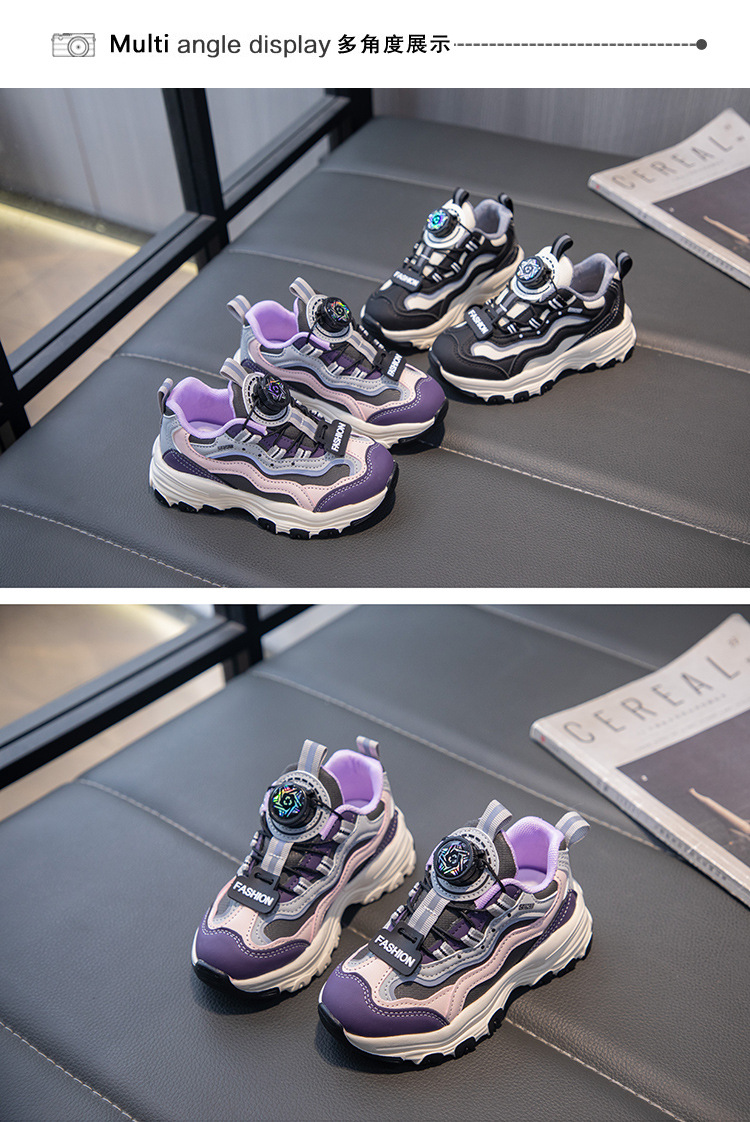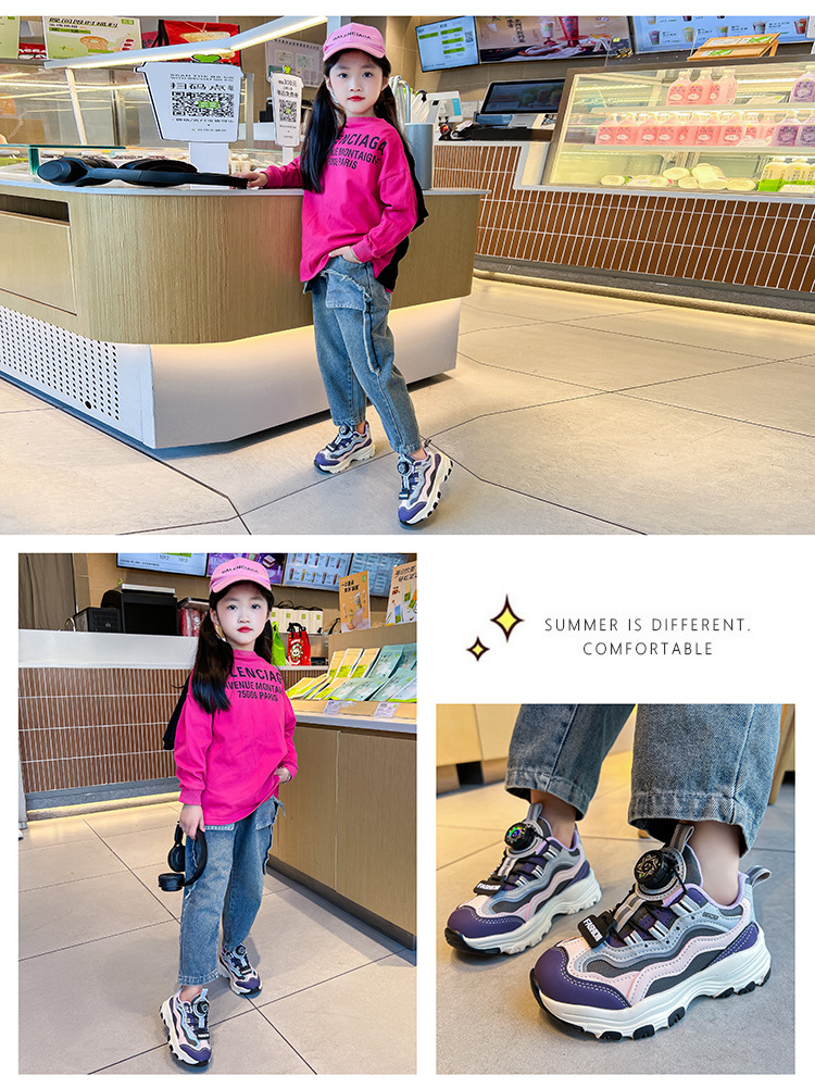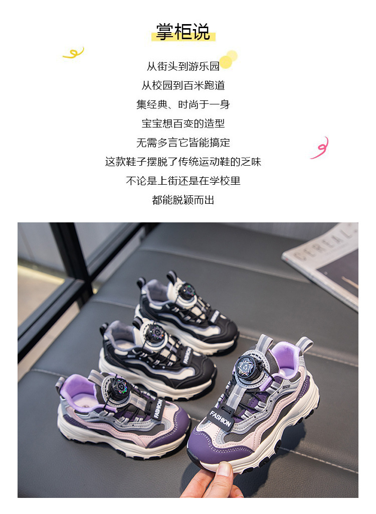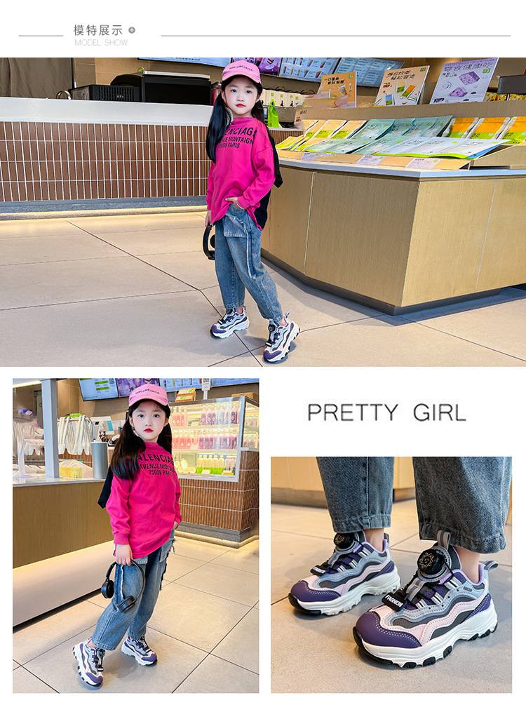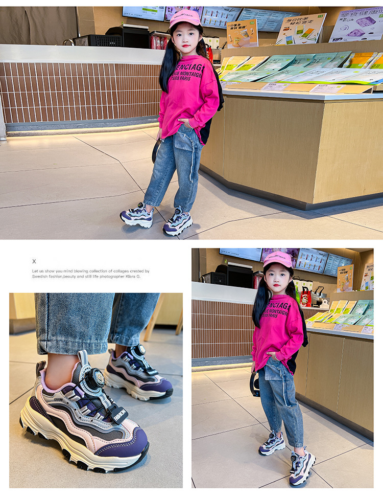 儿童2024年春季新款运动鞋春秋舒适中大童老爹鞋旋转纽拼色潮流童스토어 가기