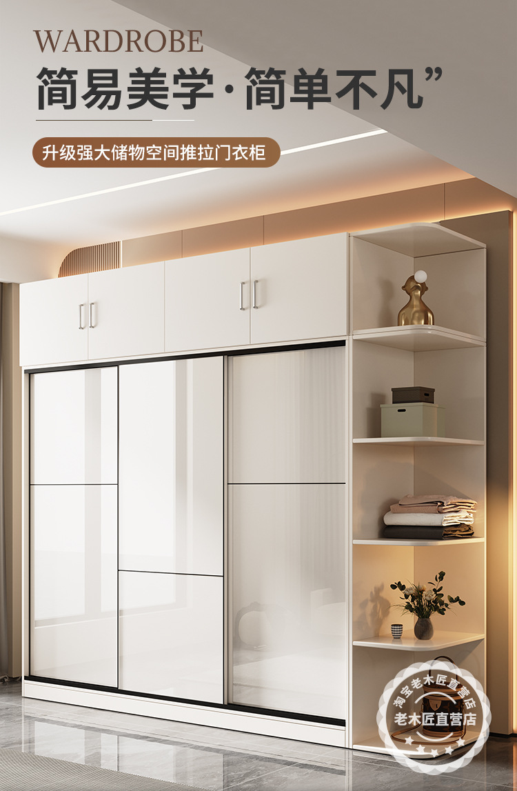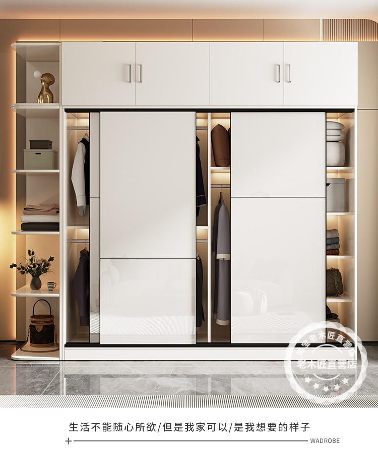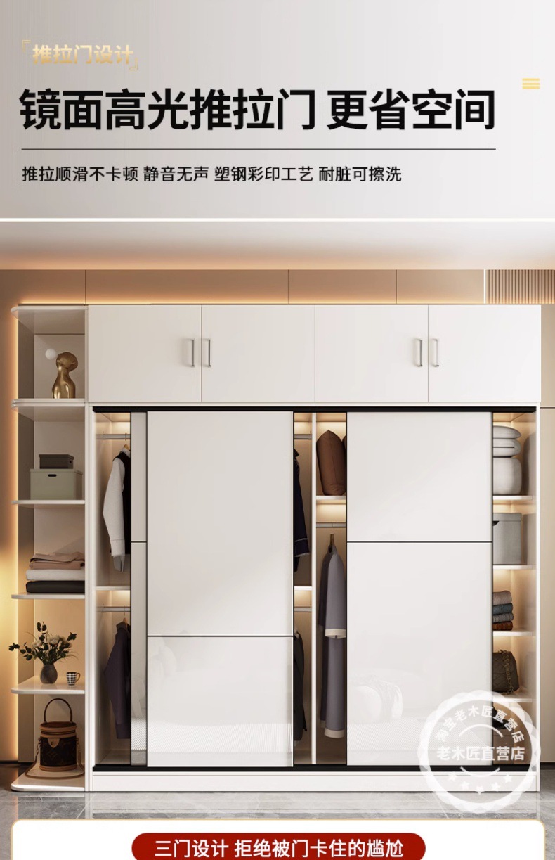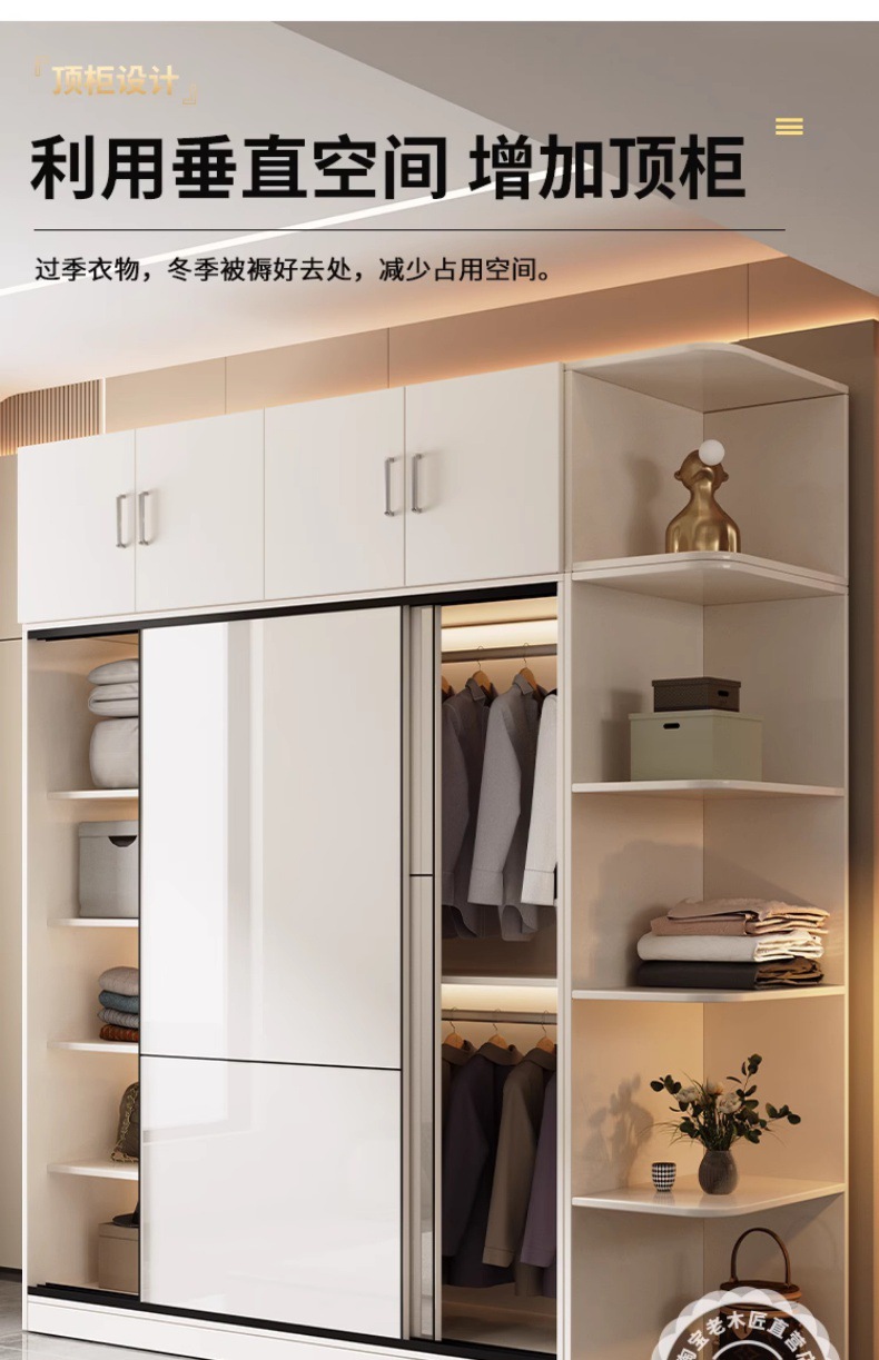 옷장 가정용 침실 슬라이딩 도어 옷장 대여 간단한 현대 어린이 단단한 나무 작은 아파트 경제적 내각스토어 가기