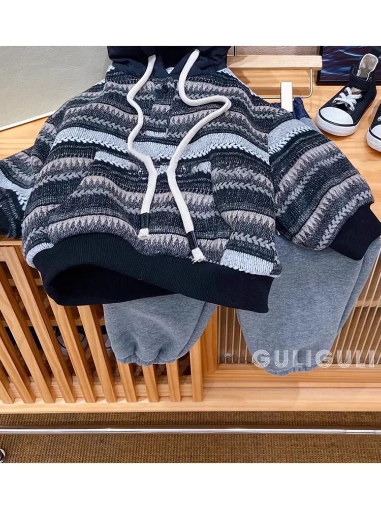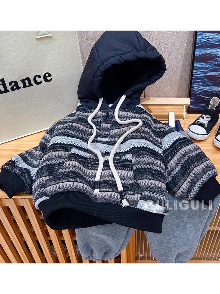 소년 기모 조끼 2024 겨울 새 어린이 잘 생긴 따뜻한 캐주얼 패션 패딩 후드 조끼 조수스토어 가기