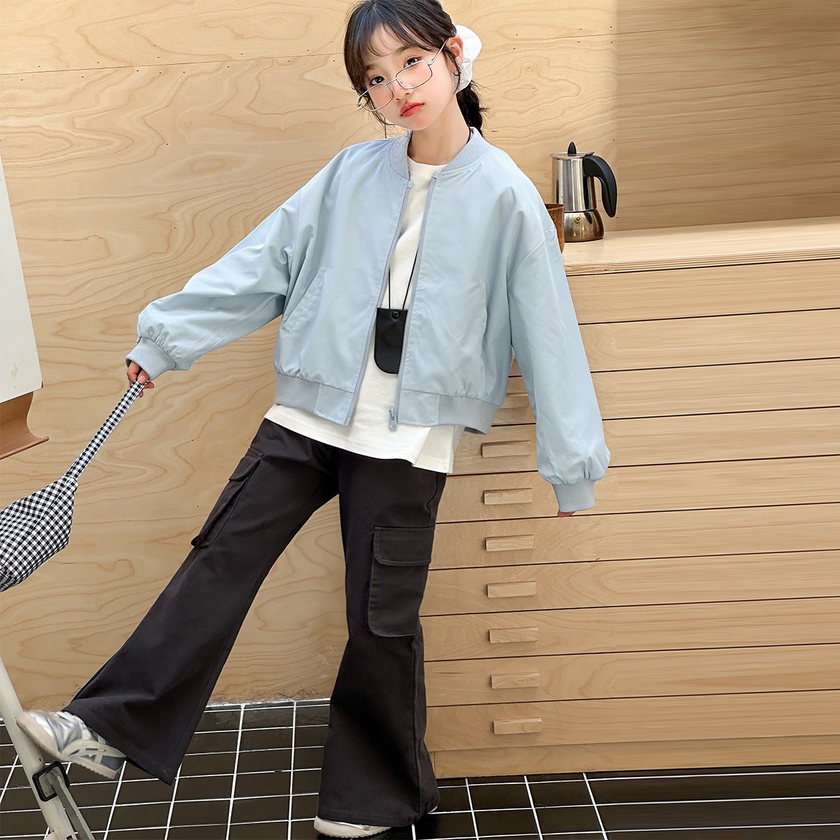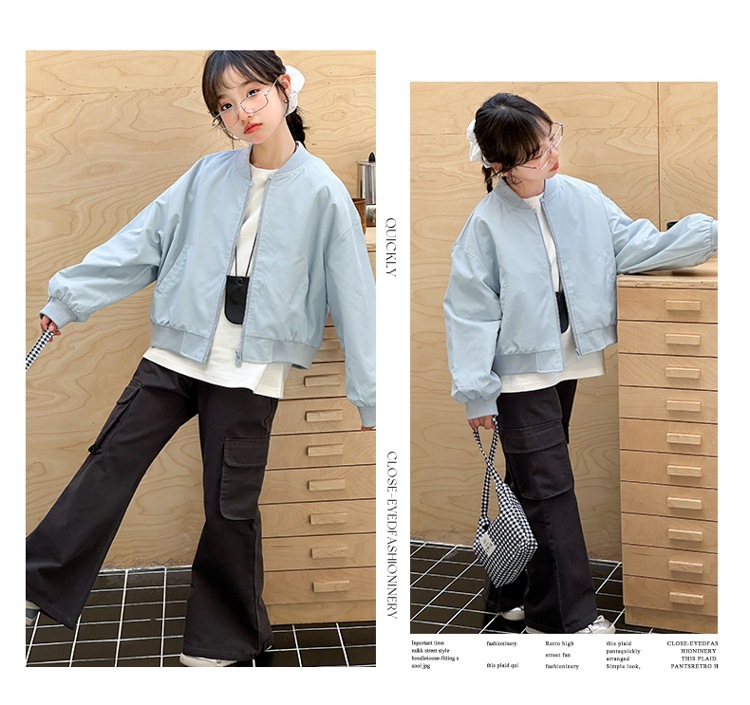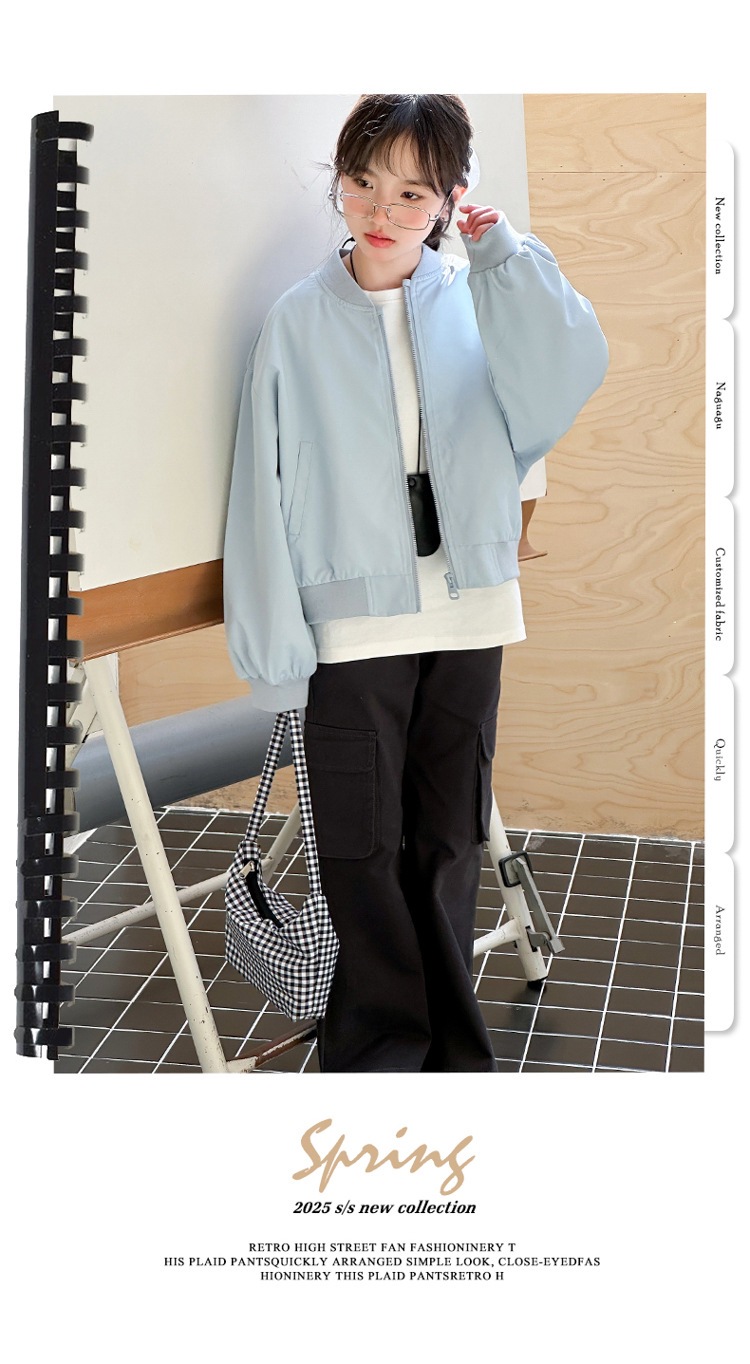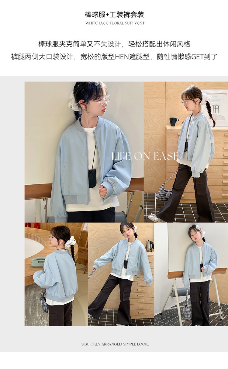소녀 코트 봄 2025 새로운 봄 어린이 트렌디 쿨웨어 중대형 어린이 야구 세트 느슨한 재킷 탑스토어 가기