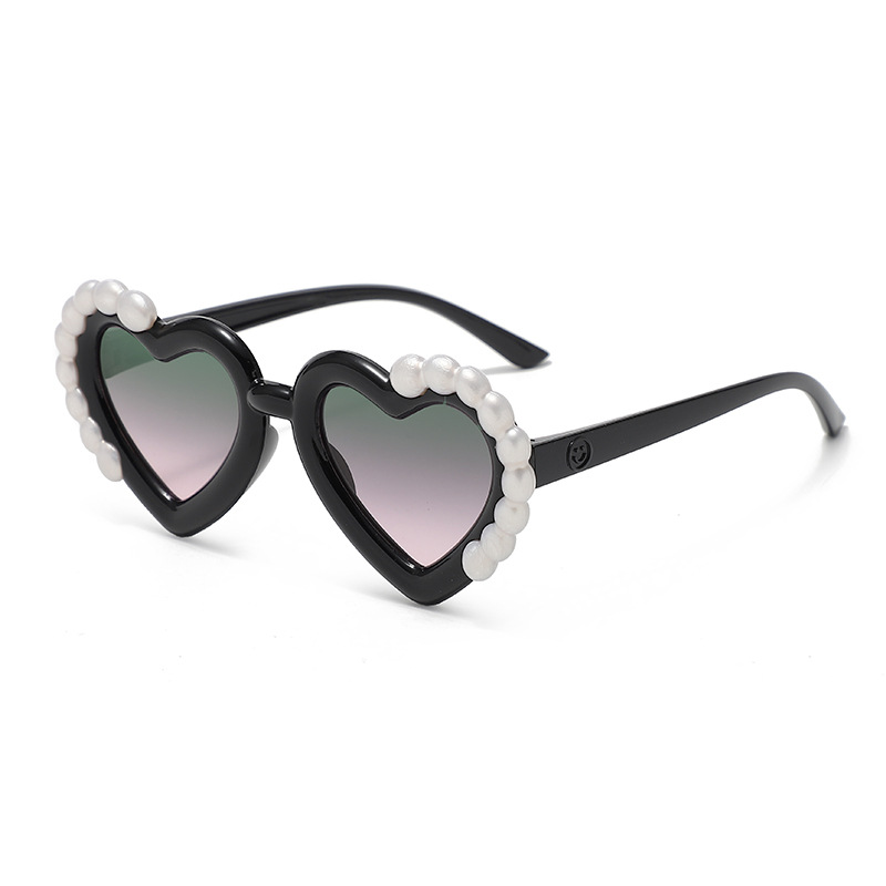 진주 사랑 패션 어린이 선글라스 도매 소녀 국경 작은 공주 새로운 복숭아 심장 안티 UV 선글라스스토어 가기