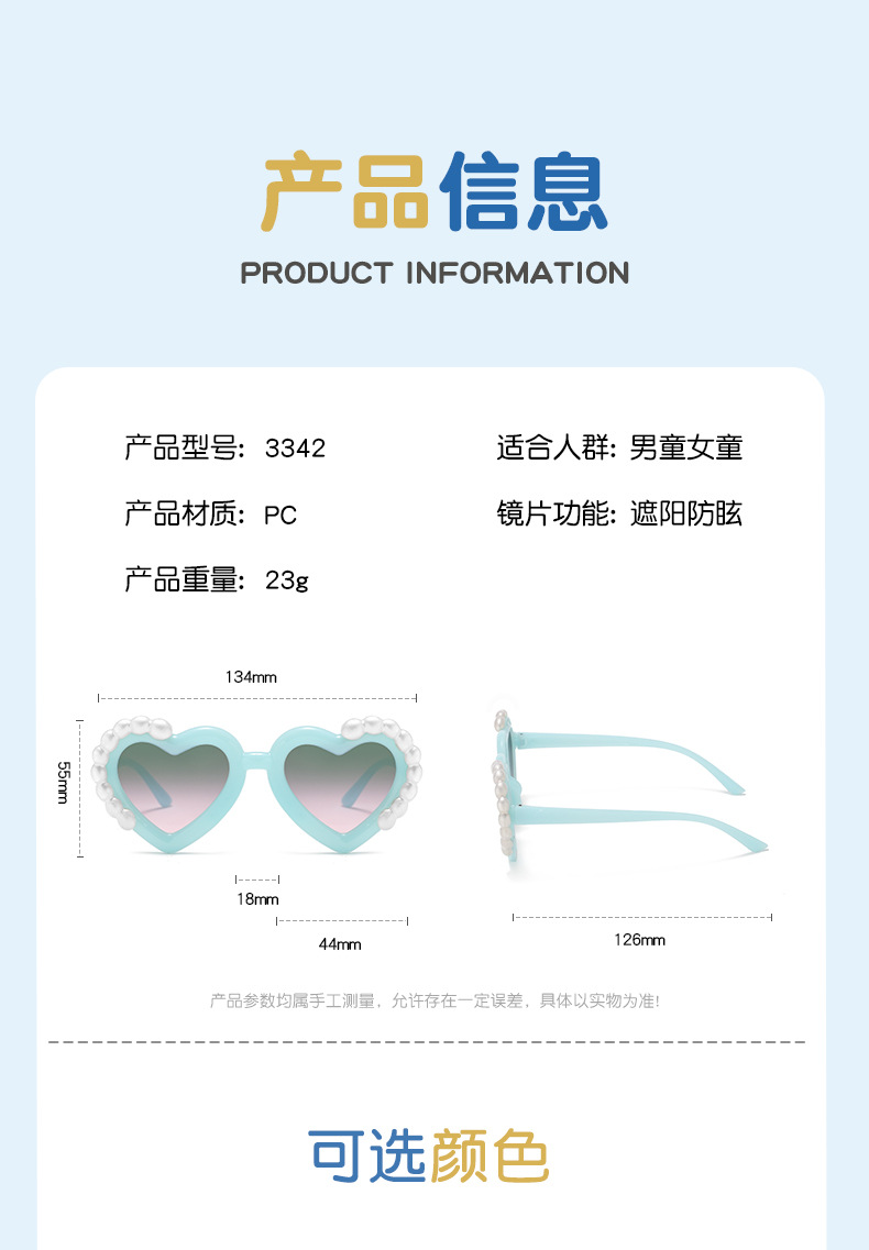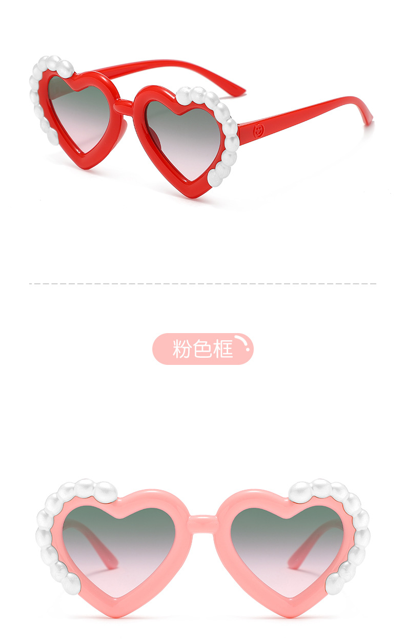 진주 사랑 패션 어린이 선글라스 도매 소녀 국경 작은 공주 새로운 복숭아 심장 안티 UV 선글라스