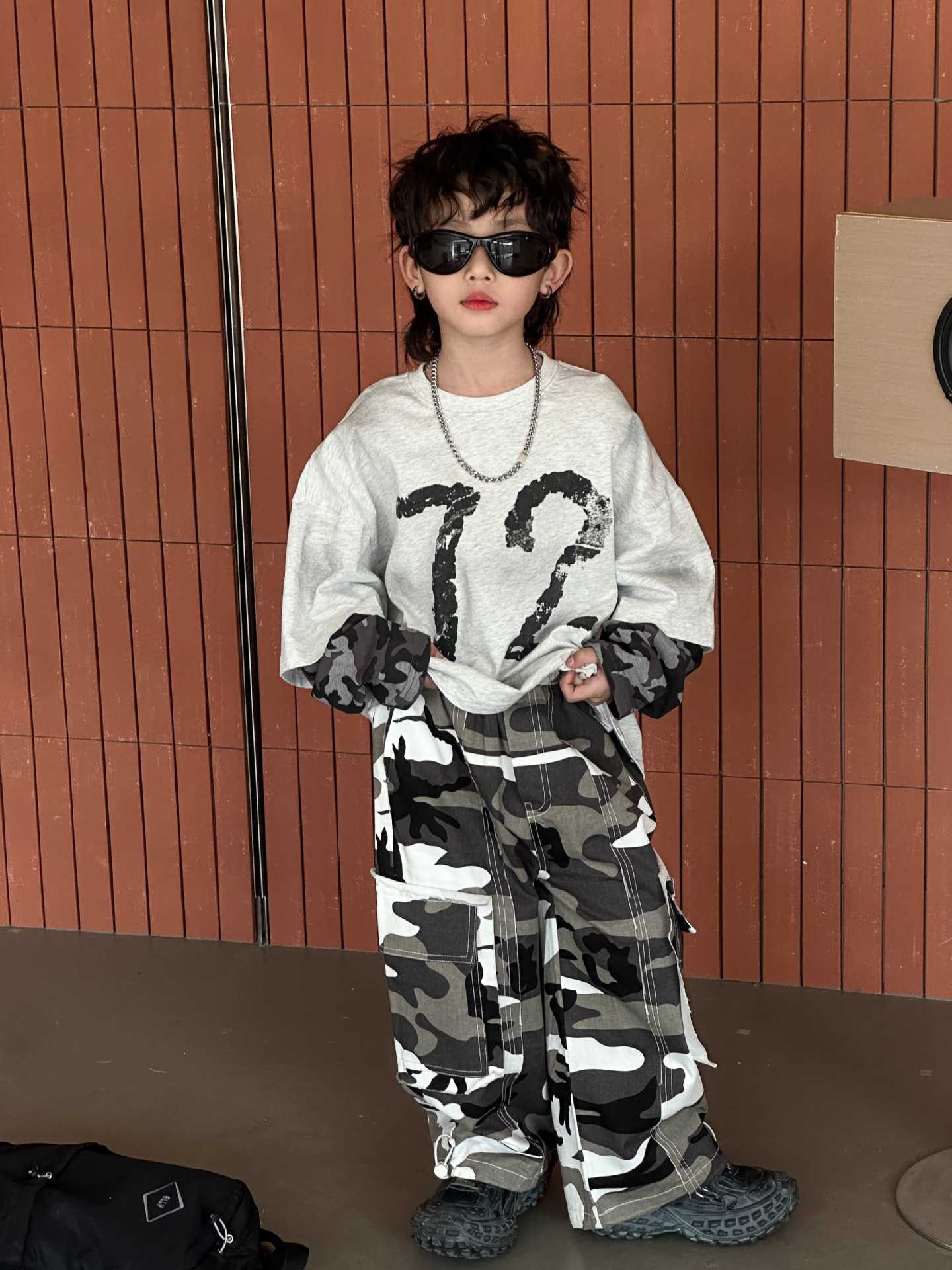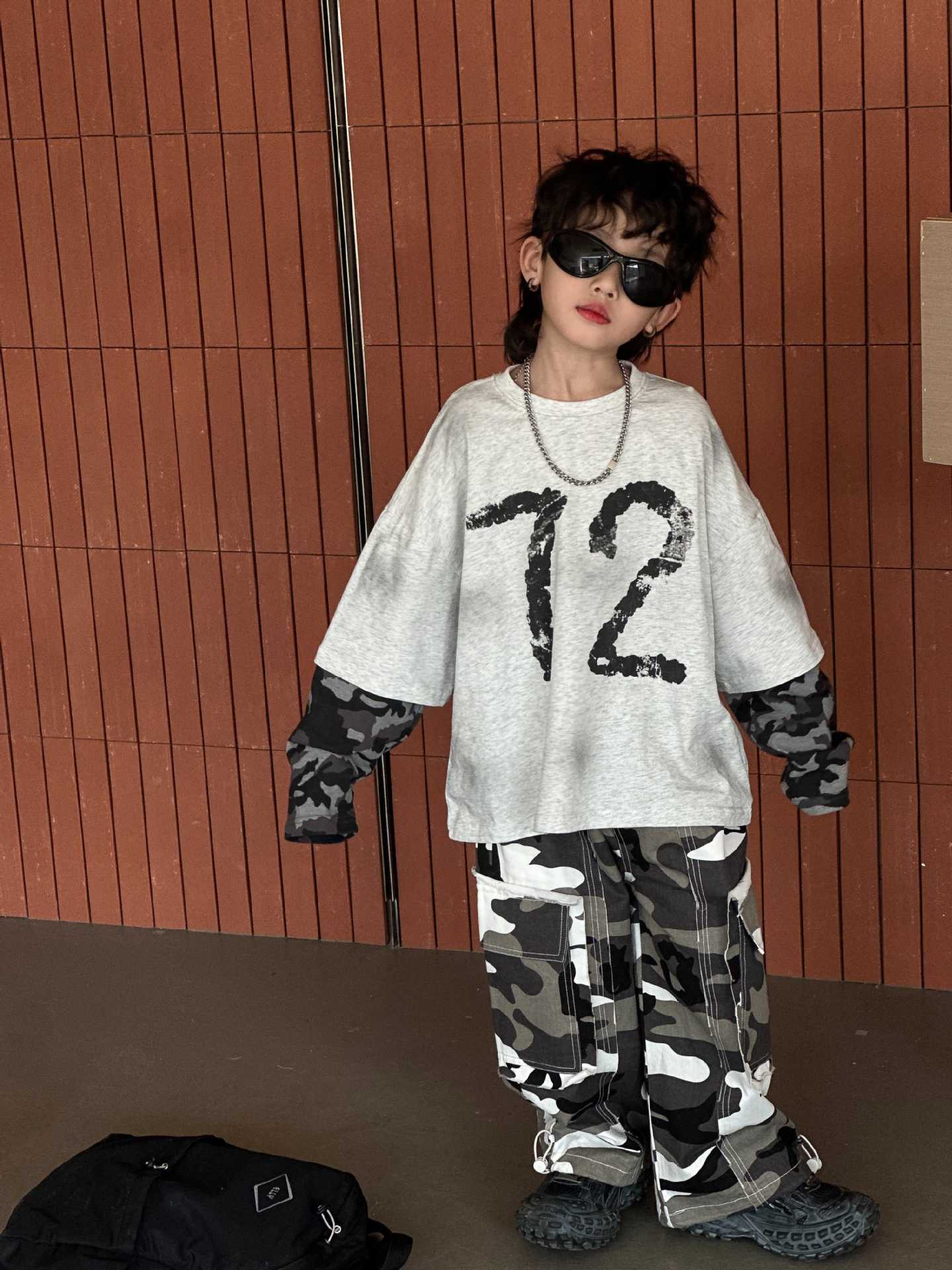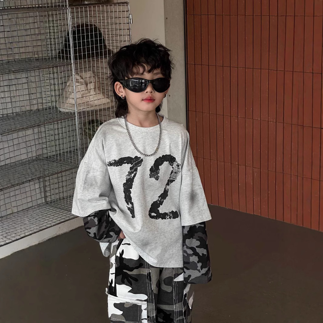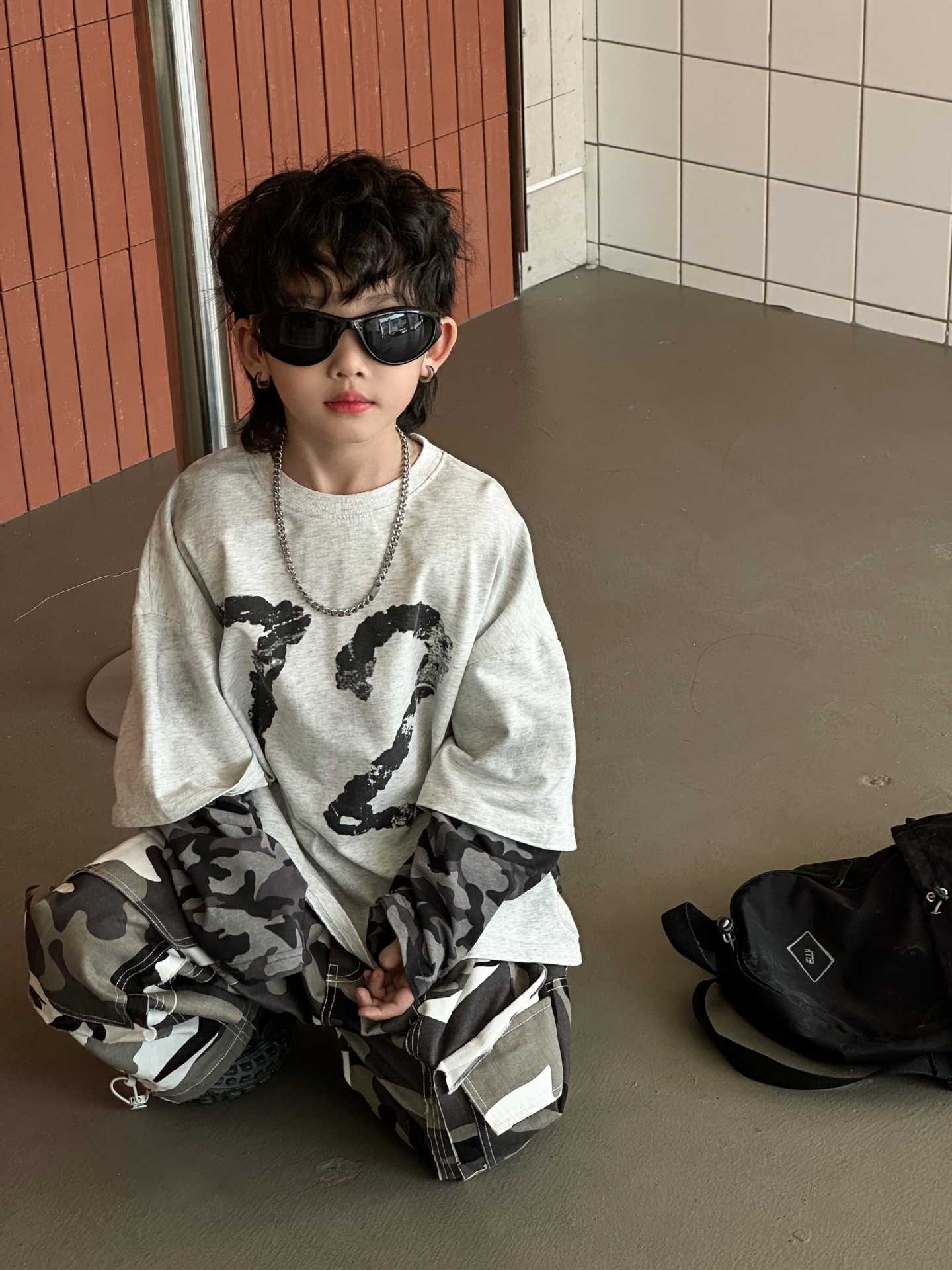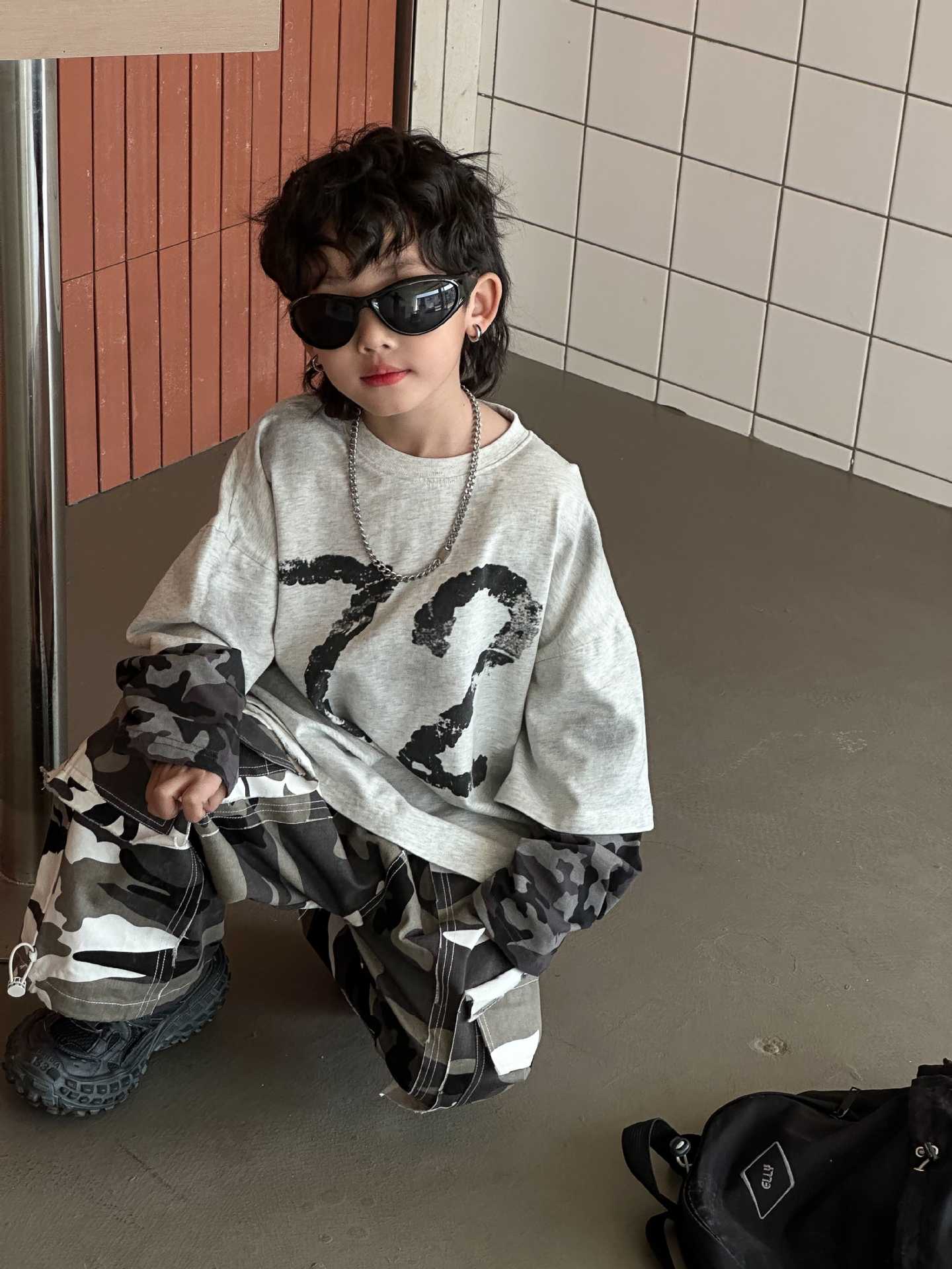 2025 년 봄의 기원 추적 가짜 투피스 레오파드 티셔츠 소년 어린이 긴소매 탑 유행 올매치 한국 루즈스토어 가기