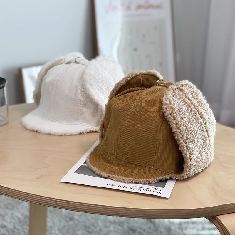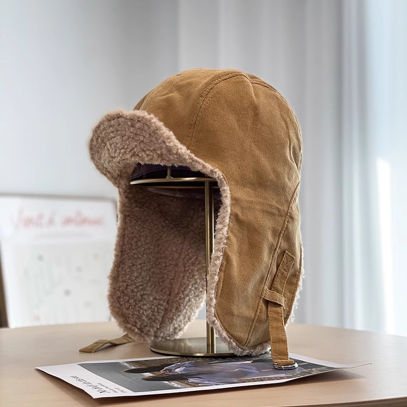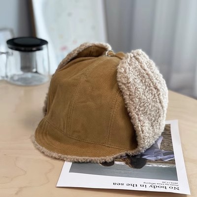 灯芯绒护耳帽男士骑电动车防风加绒保暖羊羔毛绒雷锋帽子女秋冬季스토어 가기