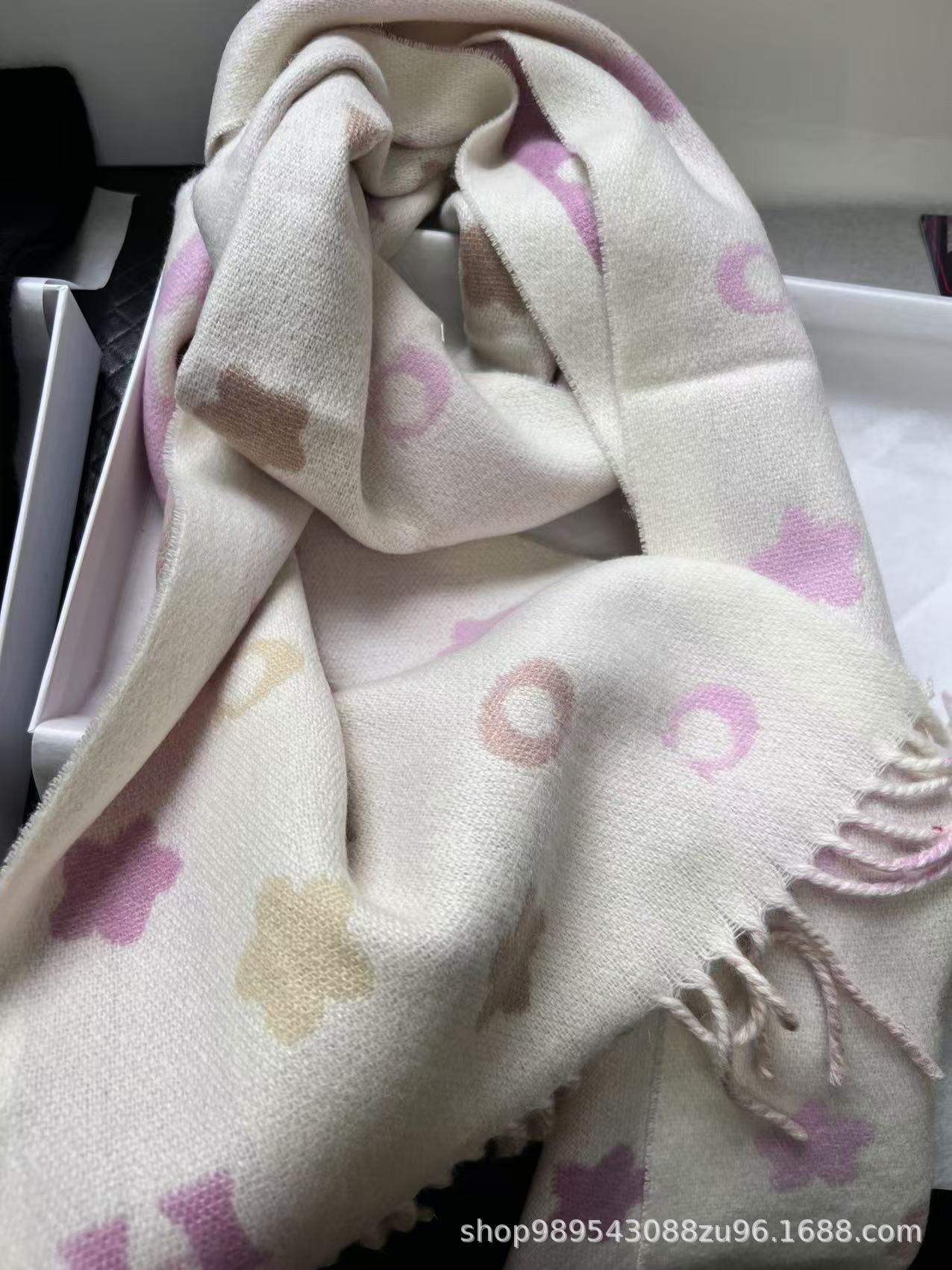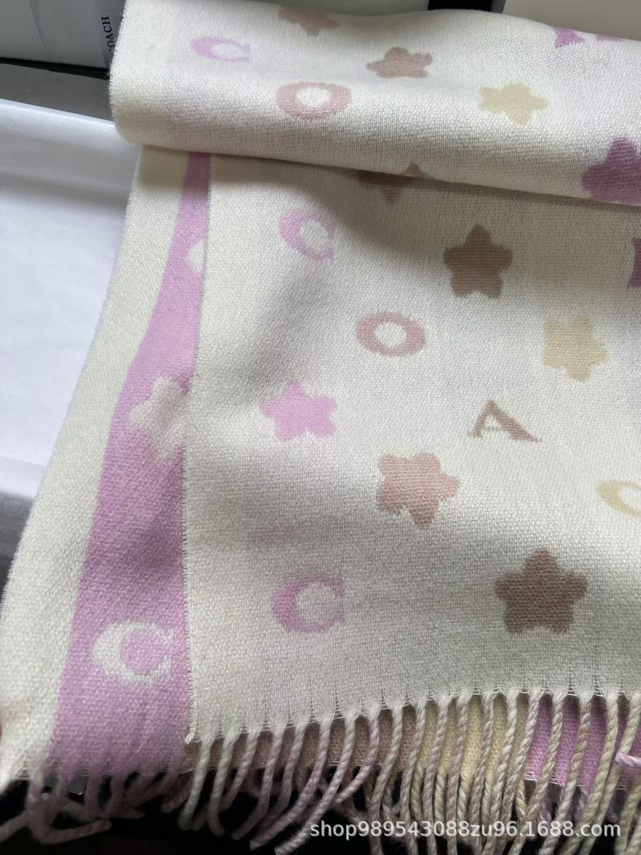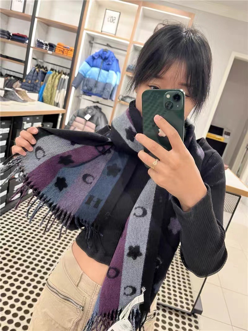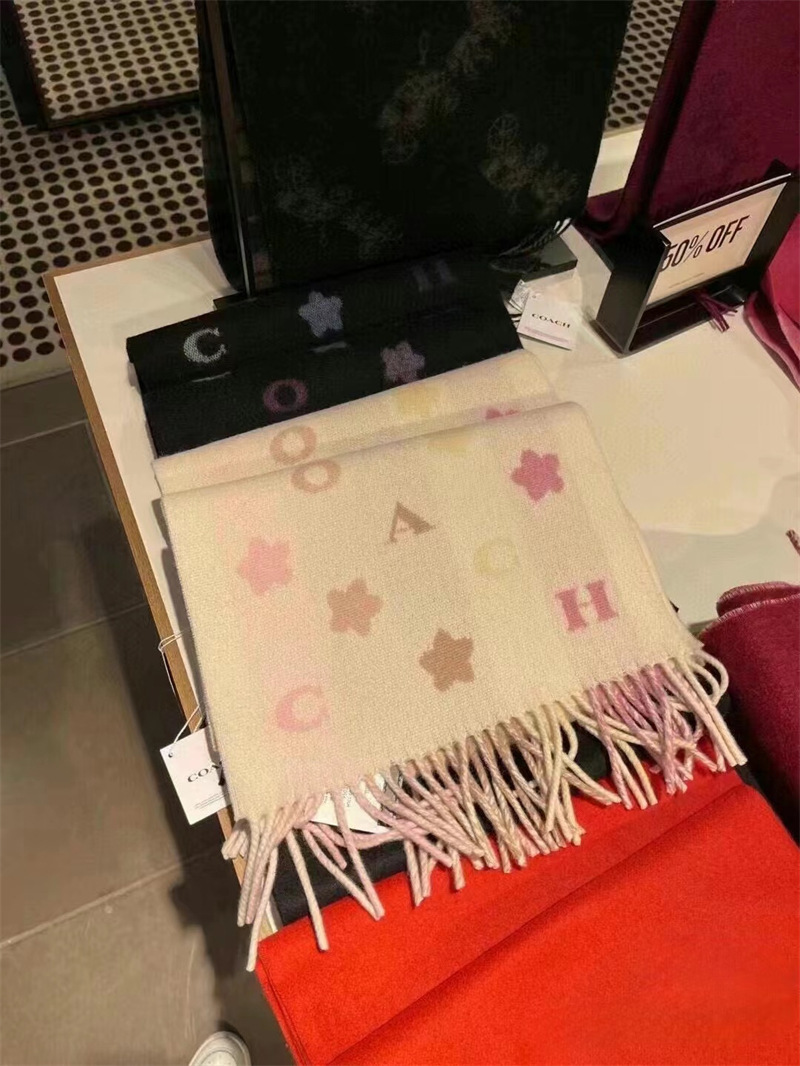 双面双色,不仅有颜值还有品质!羊毛的材质手感超级软糯火和舒服!整体宽度还可以,算是小披肩,正反面做的互补色,一面是深色搭配浅色底,另一面是相反色。新款花朵星星款真的很美,上身效果绝绝子!字母款经典的红色,气质的灰色,优雅的黑色,还有温温柔柔的奶茶色,一定要冲这一条~~