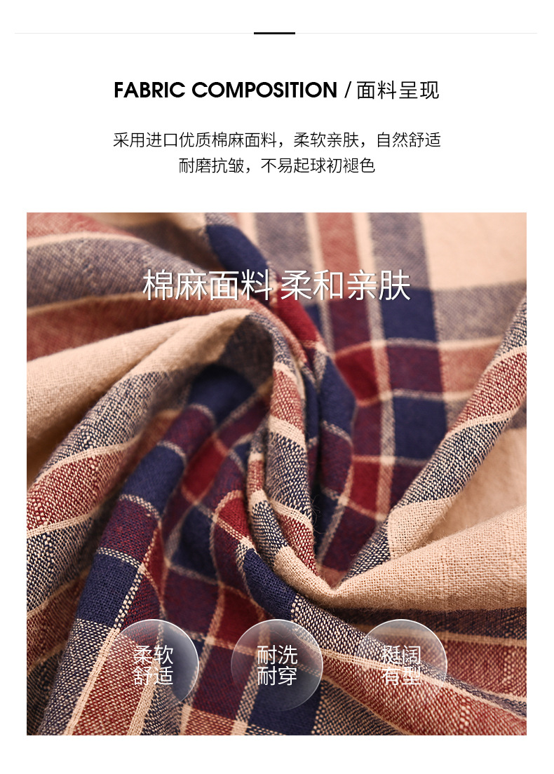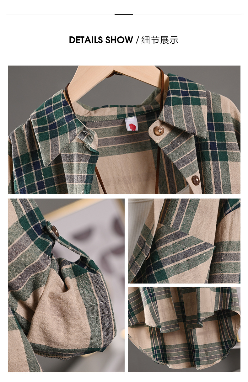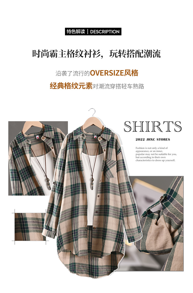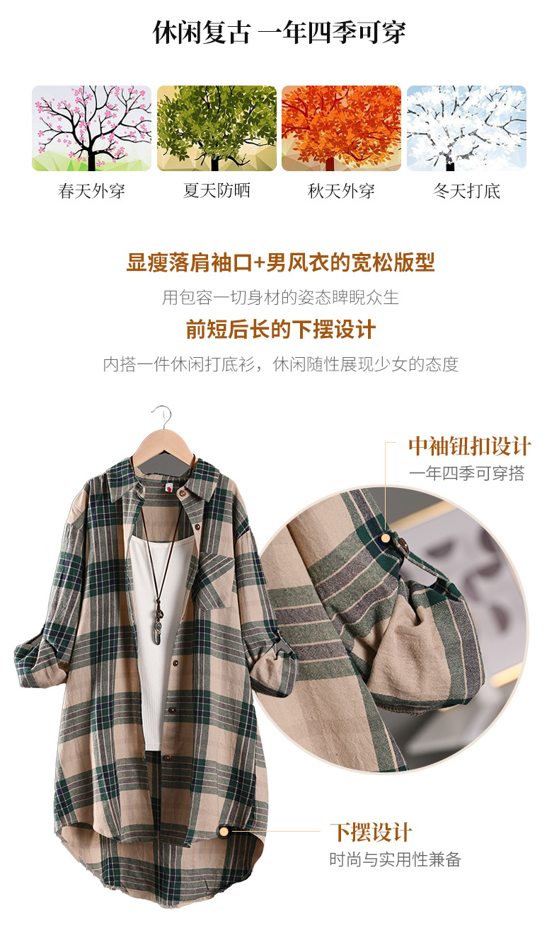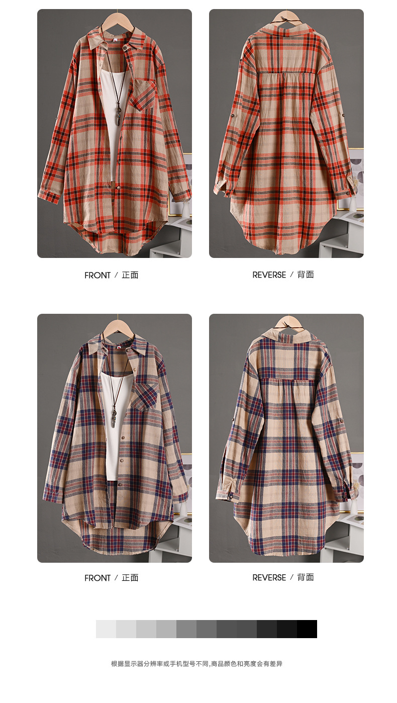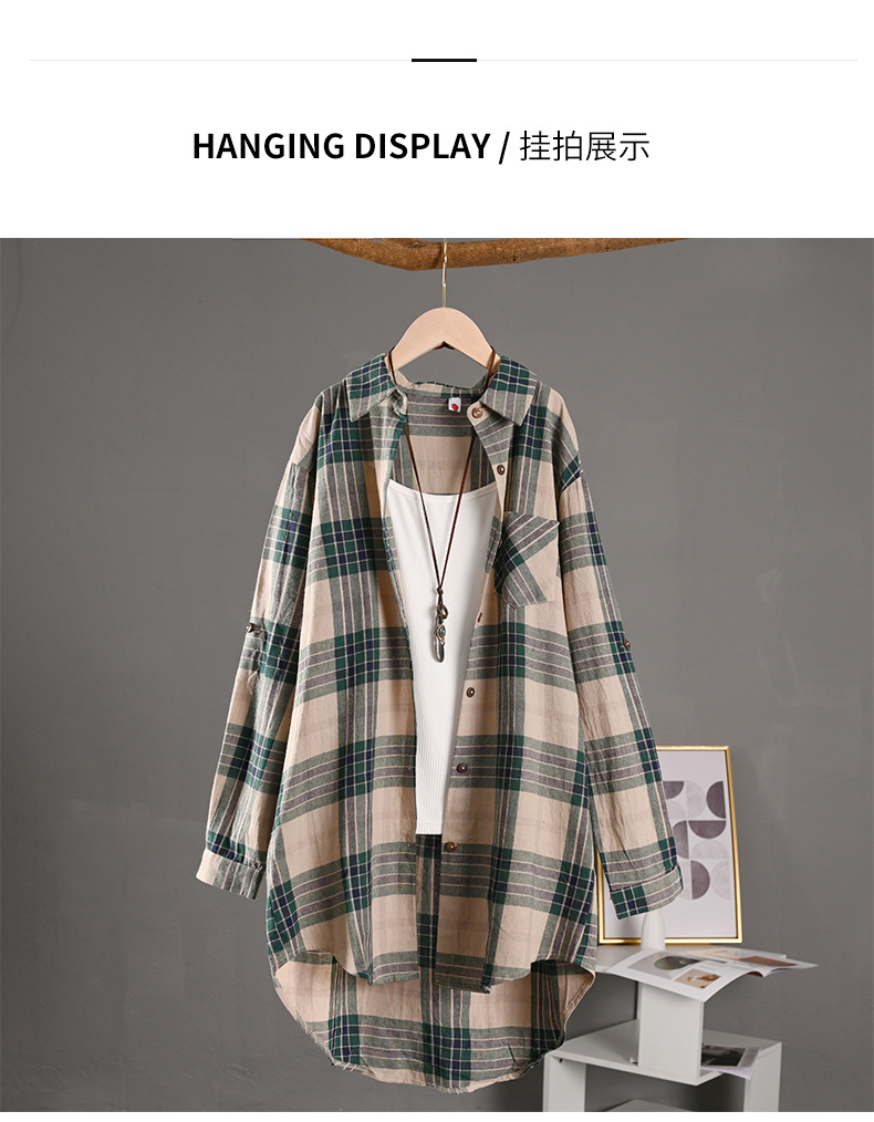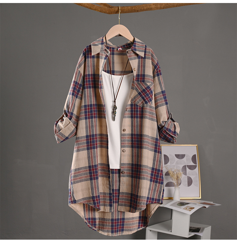 국경 간 여성 면 및 린넨 셔츠 중간 길이 복고풍 봄, 여름, 가을 자외선 차단 셔츠 카디건 얇은 코트 긴팔 격자 무늬 셔츠스토어 가기