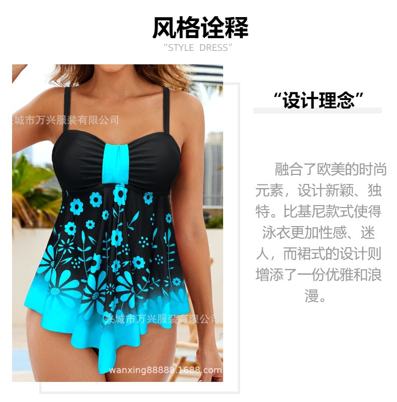 2024 유럽과 미국의 새로운 대외 무역 스플릿 수영복 스커트 스타일 패션 섹시한 대형 프린트 비키니 수영복 여성스토어 가기