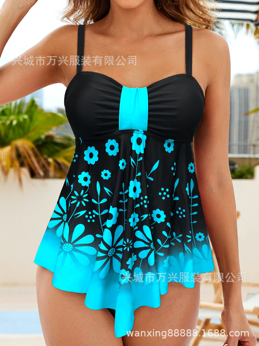 2024 유럽과 미국의 새로운 대외 무역 스플릿 수영복 스커트 스타일 패션 섹시한 대형 프린트 비키니 수영복 여성