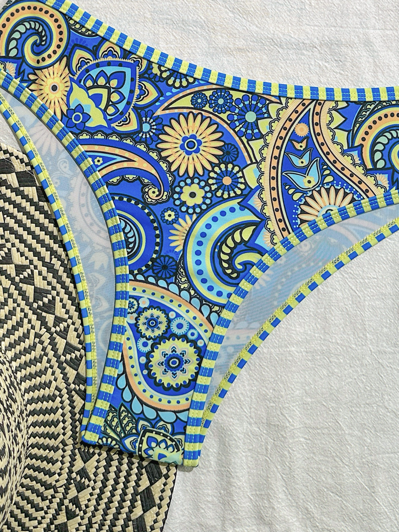 유럽과 미국의 국경 간 새로운 여성 패션 섹시한 민족 스타일 프린트 레이스 업 튜브 탑 3 점 비키니 도매