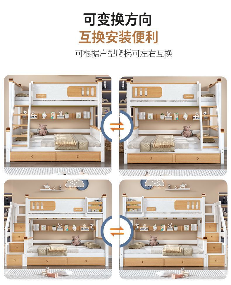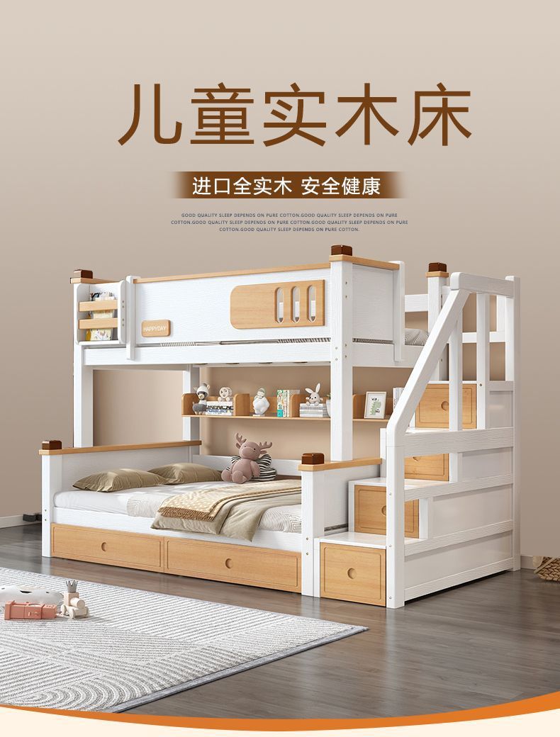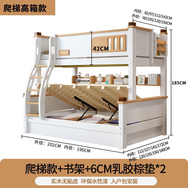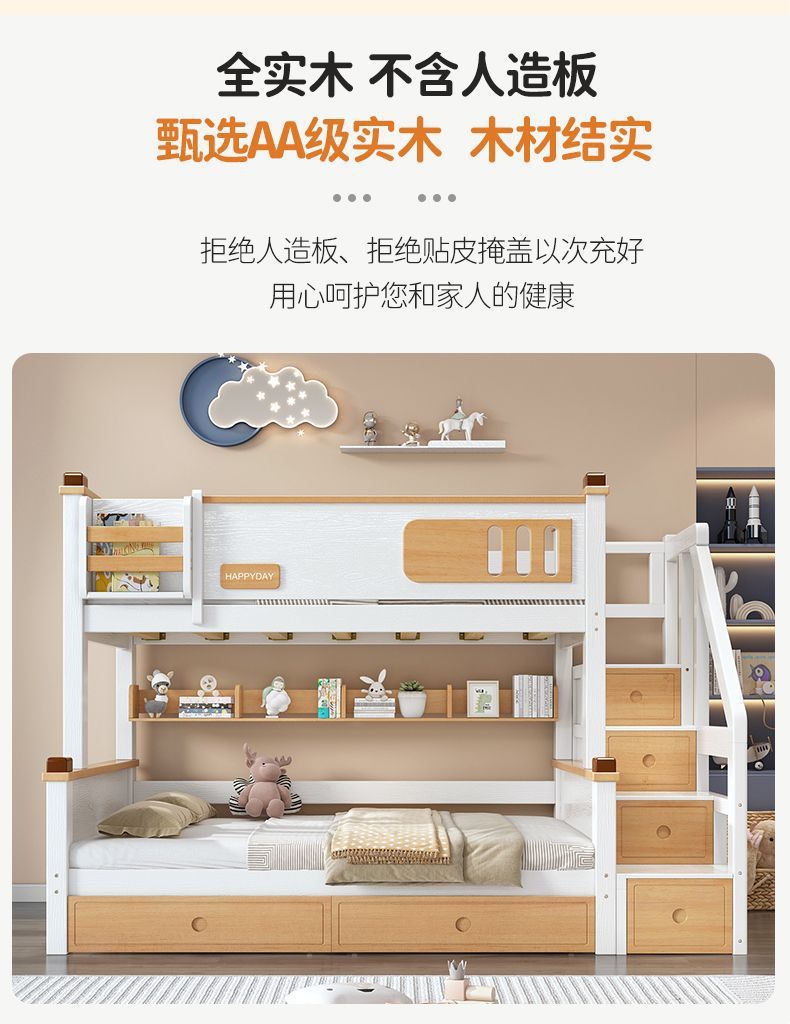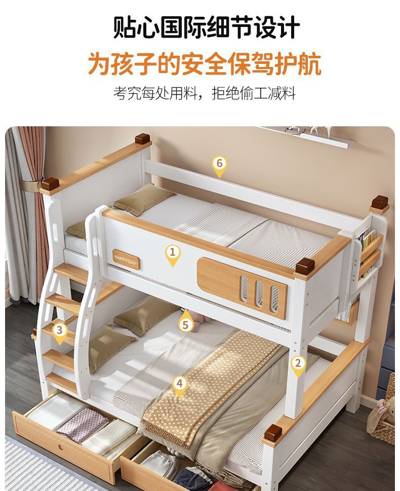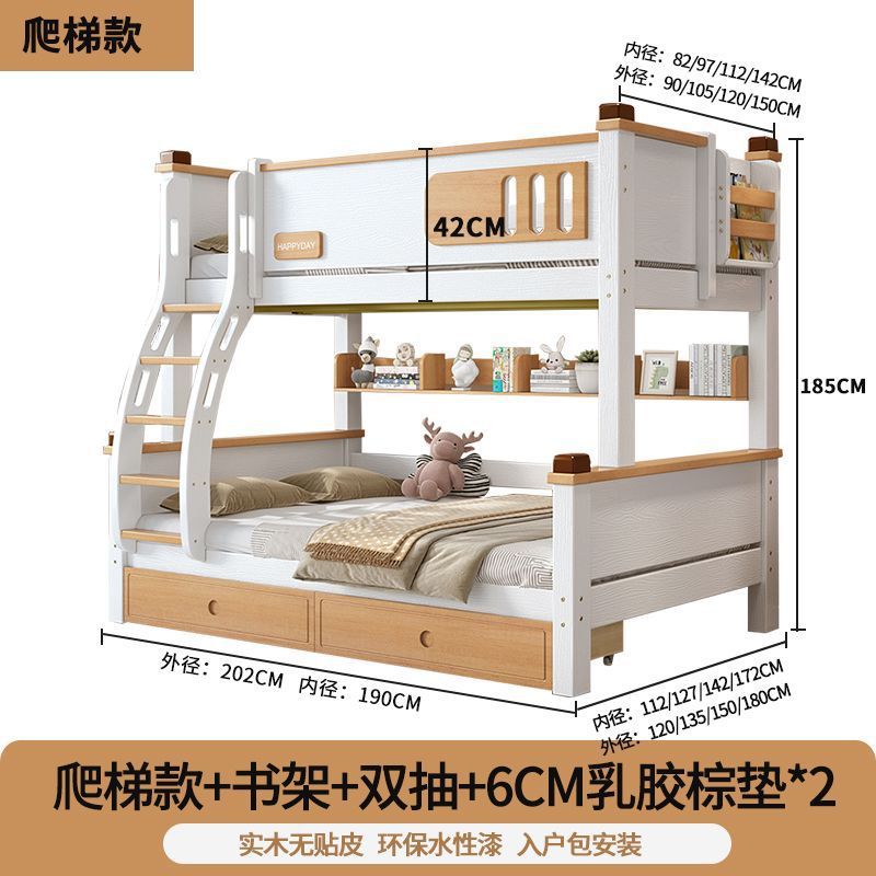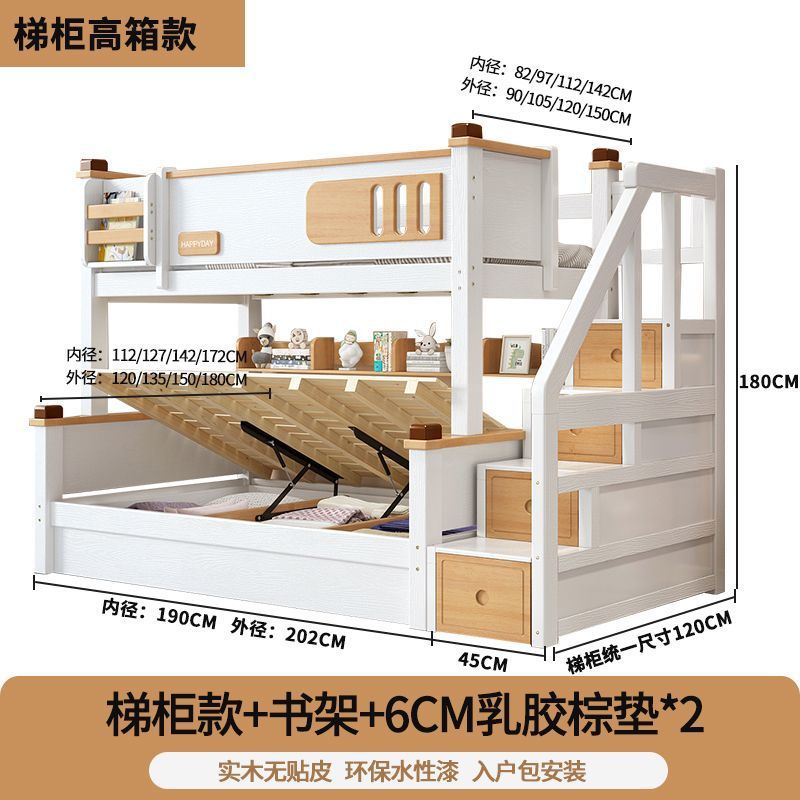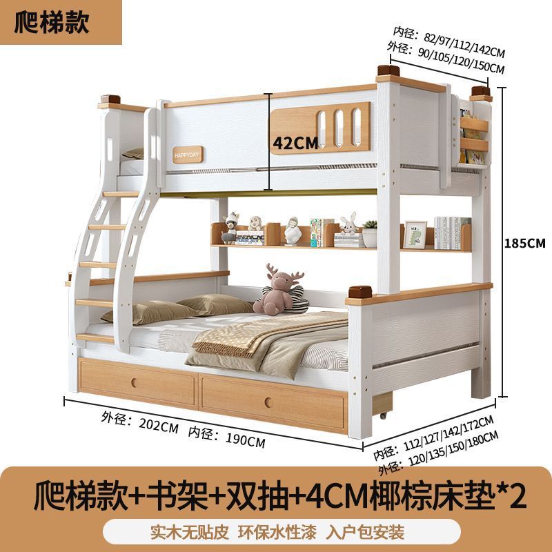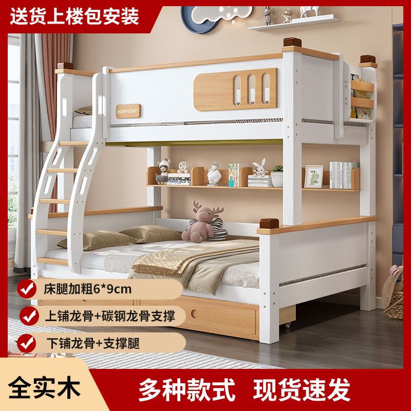 모든 단단한 나무 높고 낮은 침대 소년과 소녀 더블 레이어 간단한 작은 아파트 엄마와 아이 침대 어린이 2 층 침대