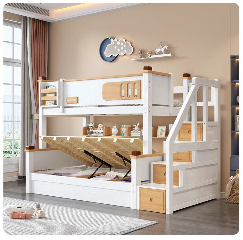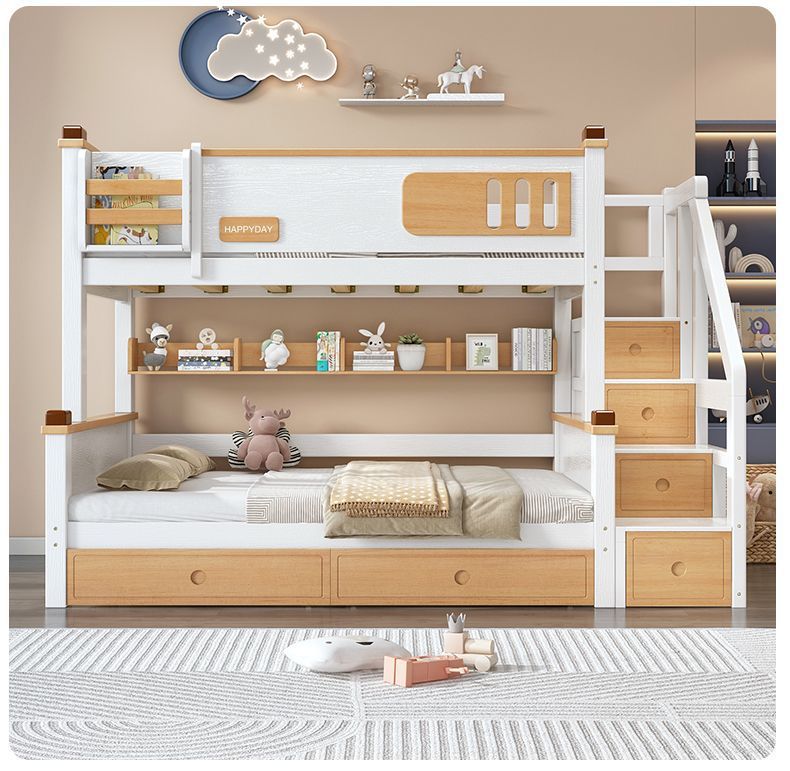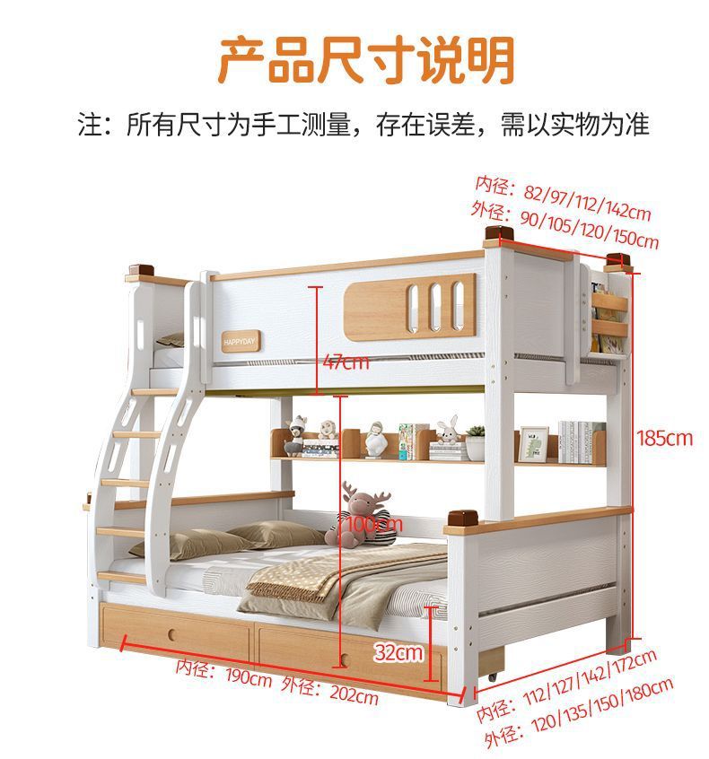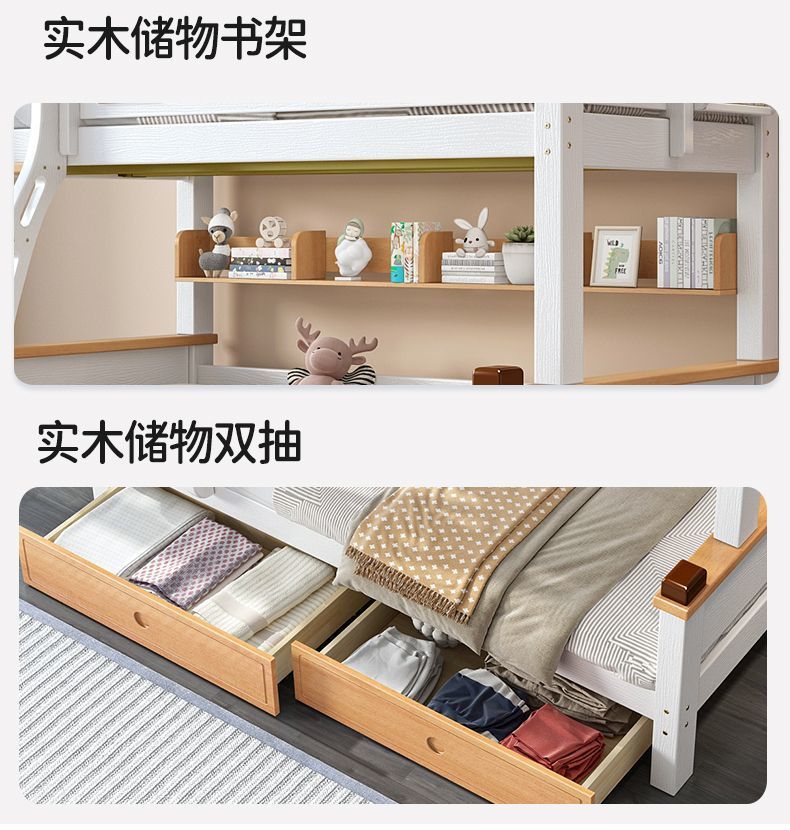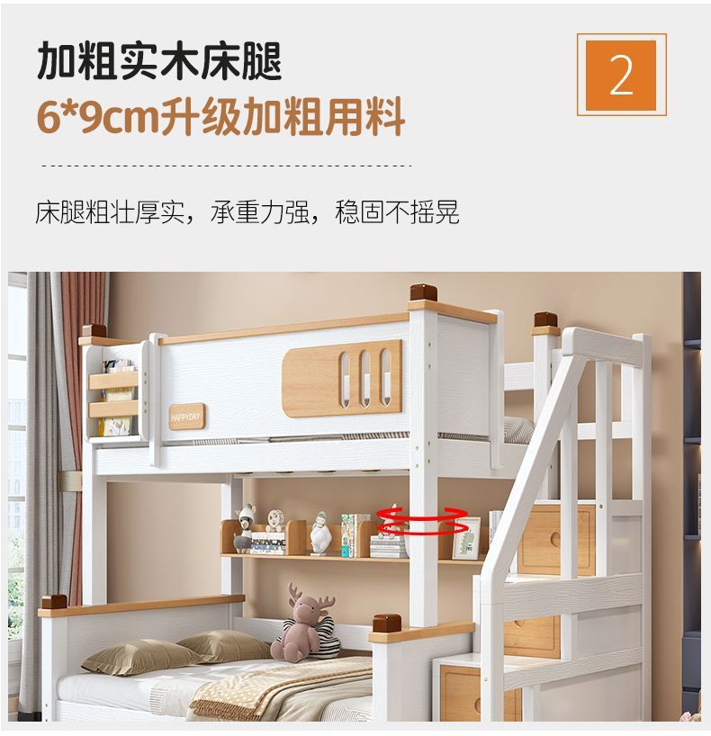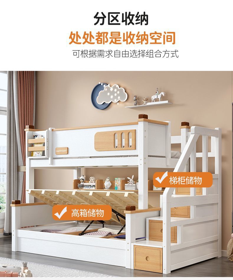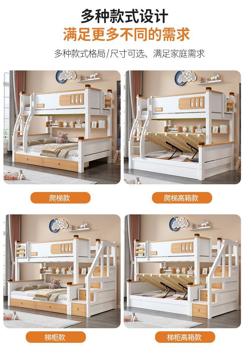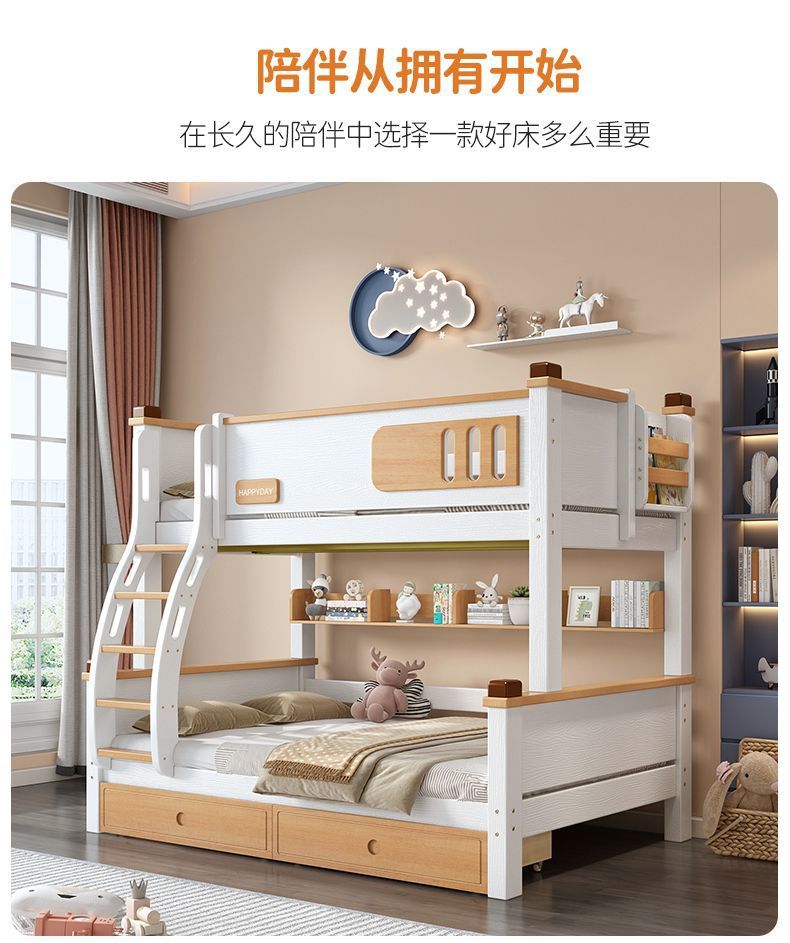 모든 단단한 나무 높고 낮은 침대 소년과 소녀 더블 레이어 간단한 작은 아파트 엄마와 아이 침대 어린이 2 층 침대