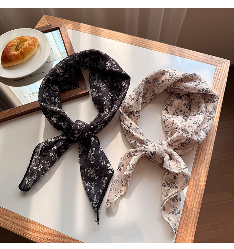 봄과 가을 일반 컬러 양면 패턴 면 및 린넨 피부 친화적 인 스퀘어 스카프 목 보호 복고풍 아트 스카프 실크 스카프 헤어 벨트 여성