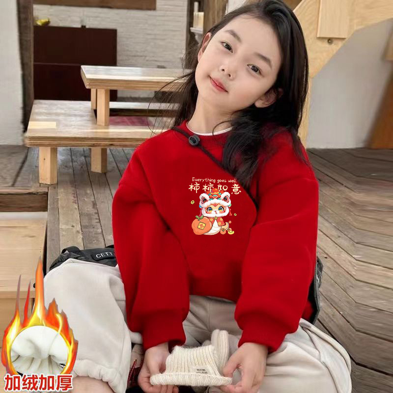 복합 벨벳 라운드 넥 만화 뱀의 해 새해 옷, 다재다능하고 패셔너블하며 벨벳과 두꺼운 새로운 새해 옷