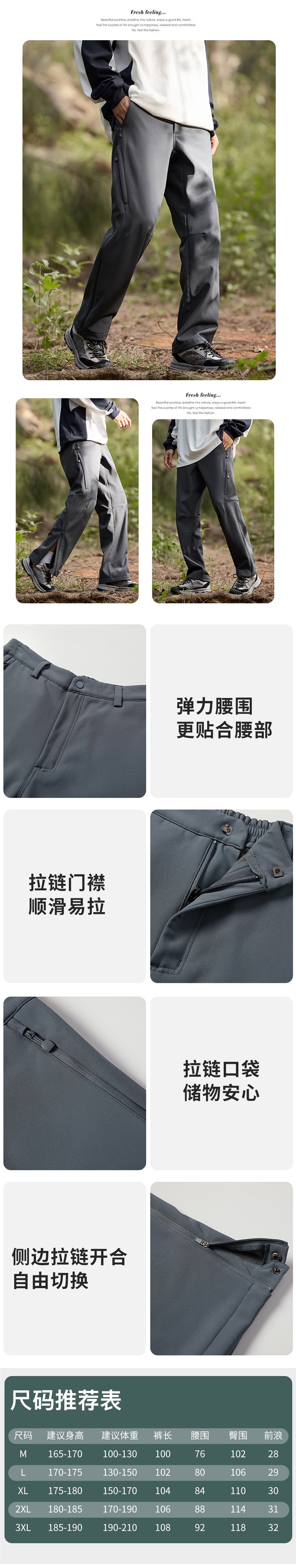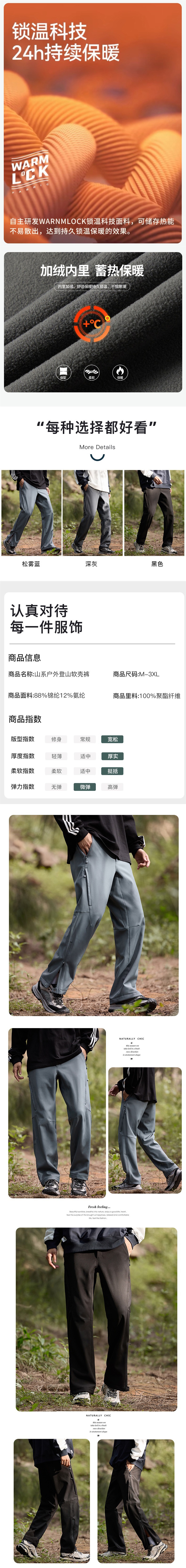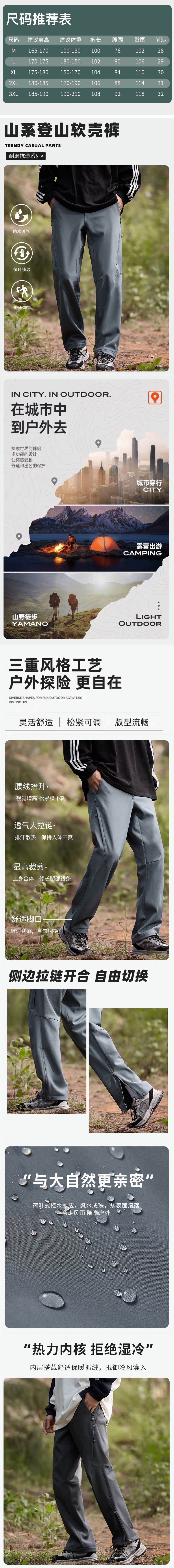 산악 스타일 충전 바지 남성용 통기성 내마모성 야외 등산 바지 여성용 방수제 기모 두꺼운 소프트 쉘 하이킹 캐주얼 바지스토어 가기