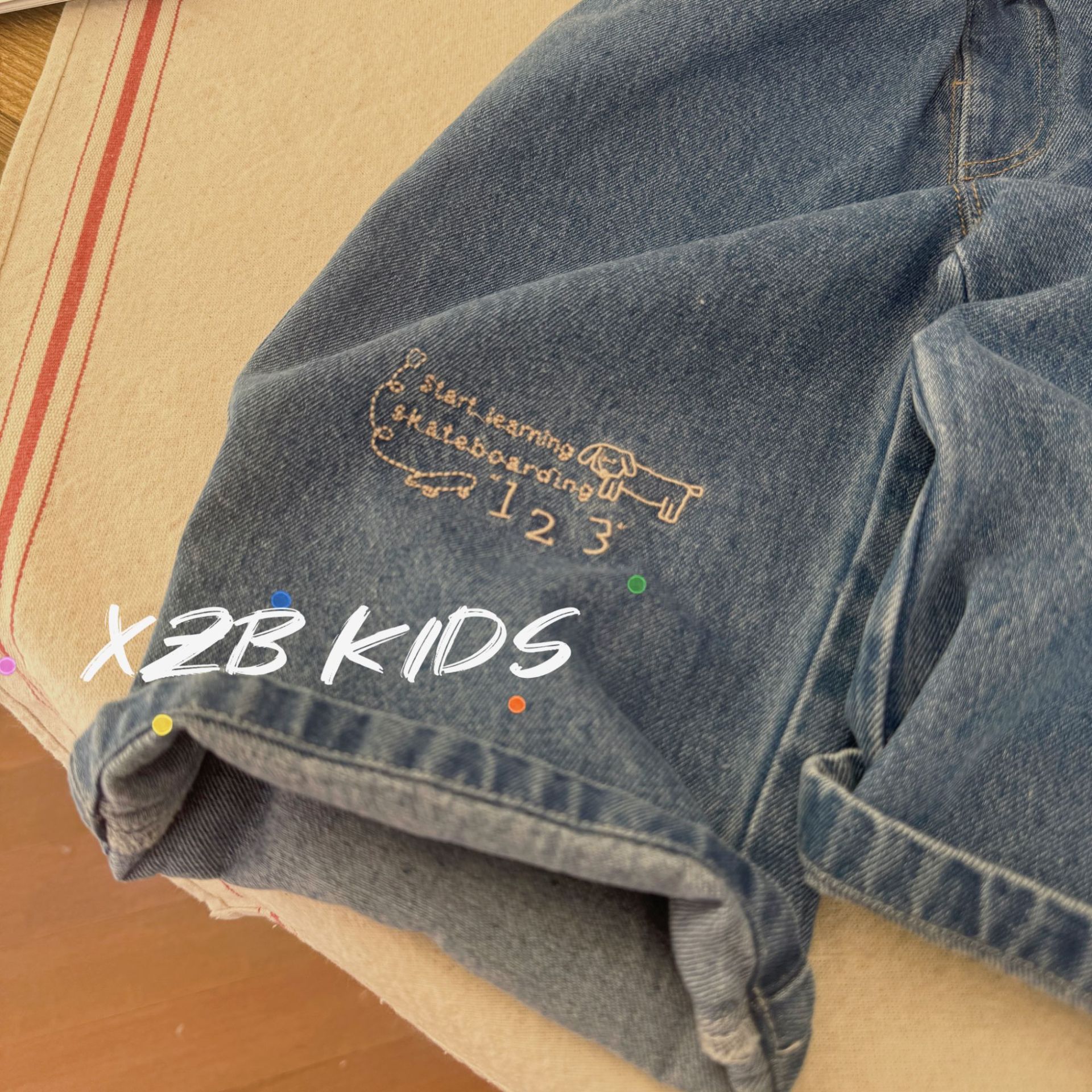 2025 봄 새 남녀 아기 한국 청바지 어린이 캐주얼 올 매치 바지 스트레이트 다리 바지