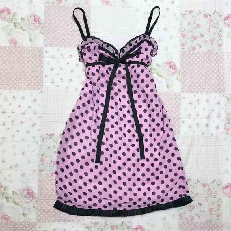 2025 국경 새로운 패션 폴카 도트 순수한 정욕 스타일 레이스 달콤한 가리 스타일 서스펜더 허리 드레스