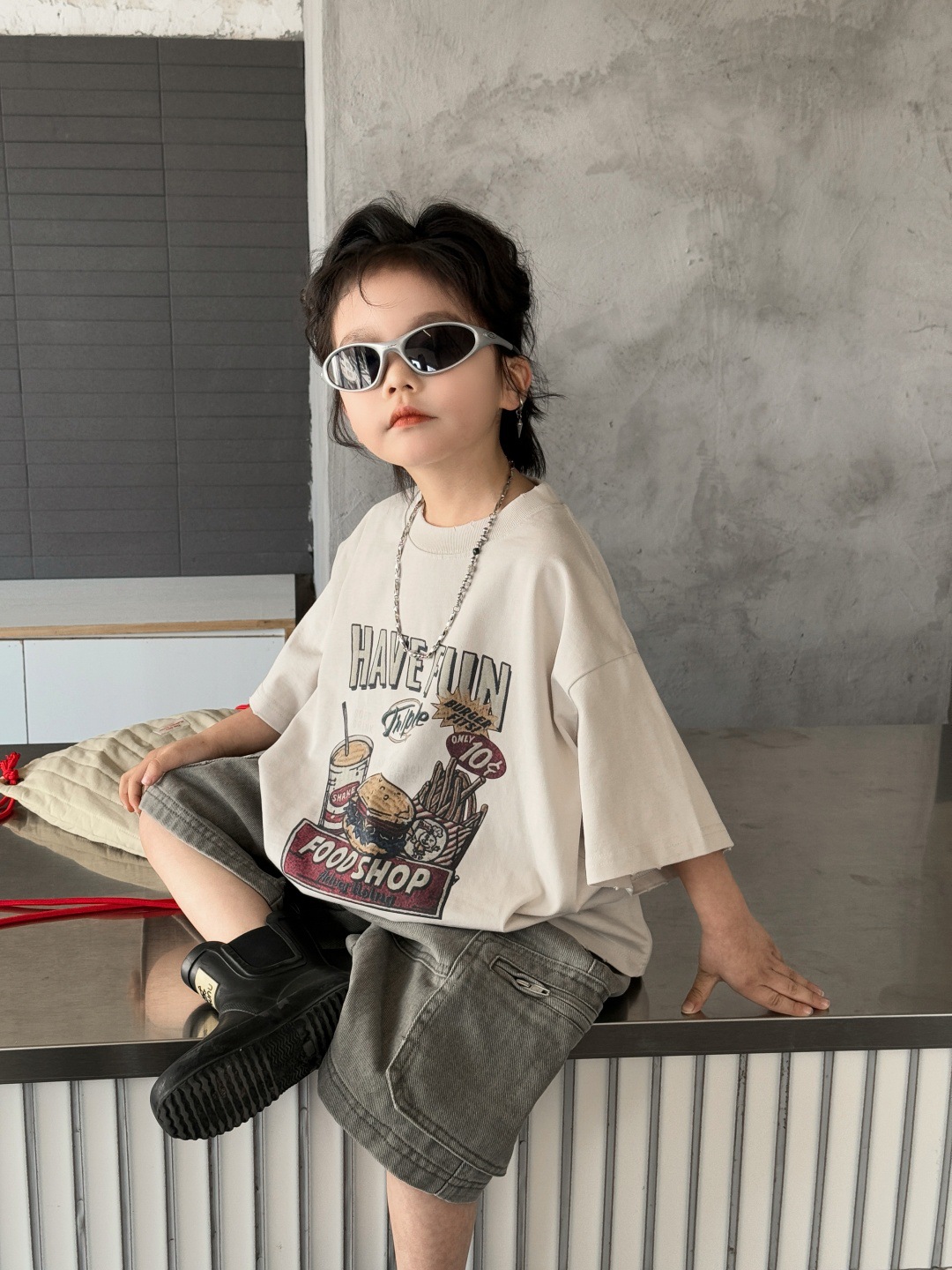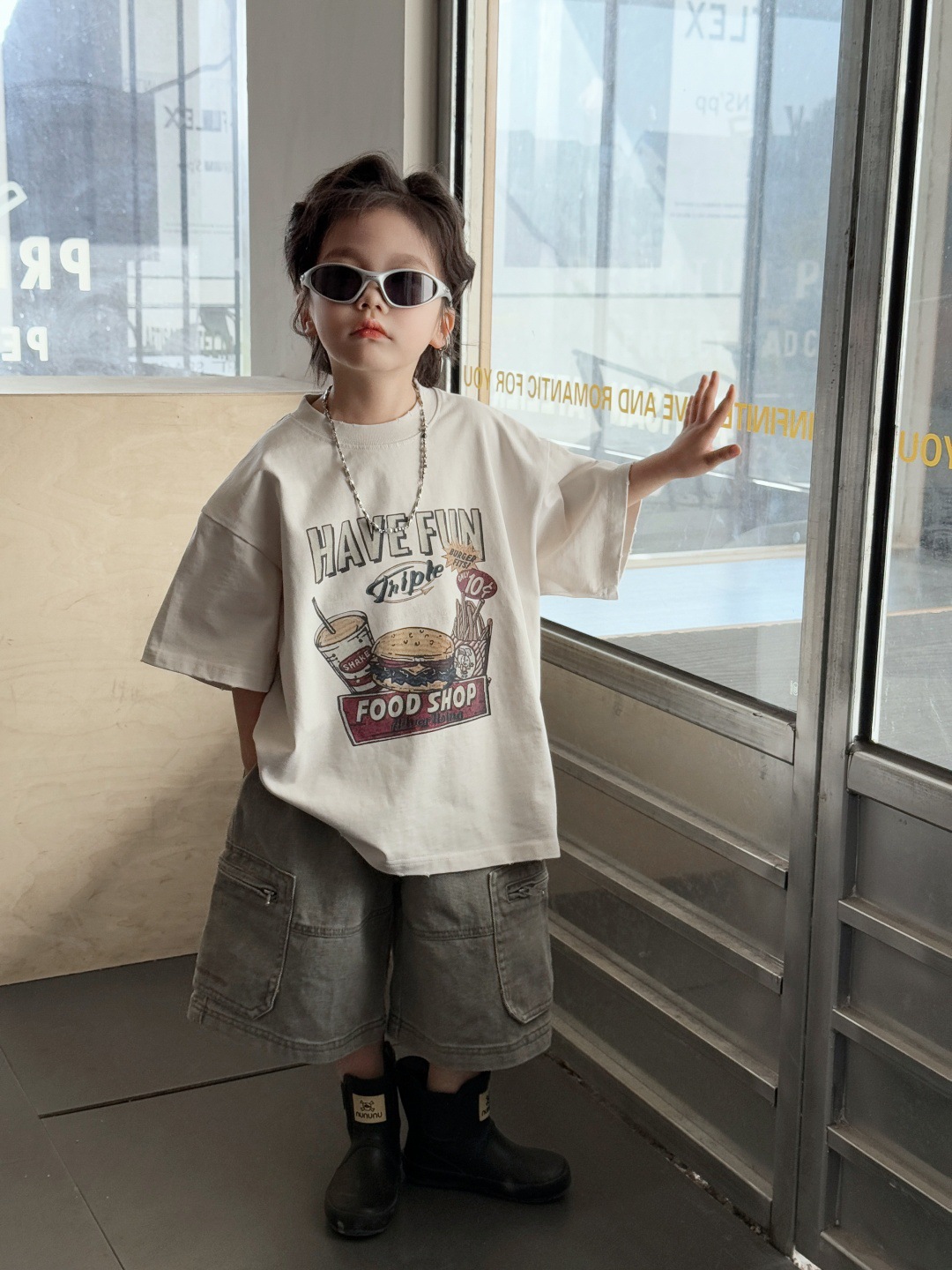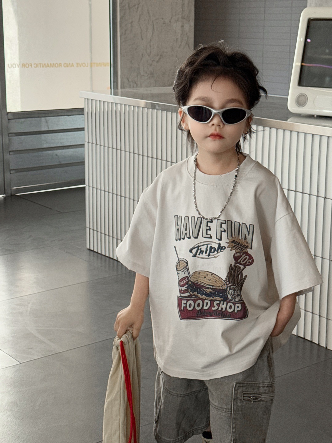 아동복 아동용 티셔츠 2025 새로운 여름 짧은 소매 탑 둥근 목 인쇄 된 소년의 트렌디 한 멋진 서양식 반소매스토어 가기