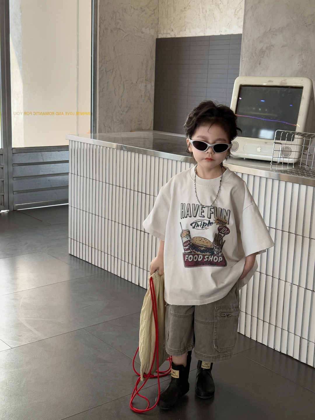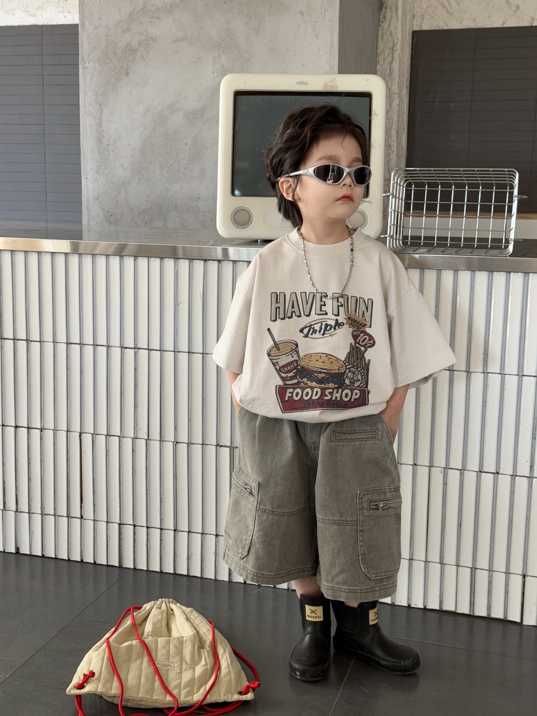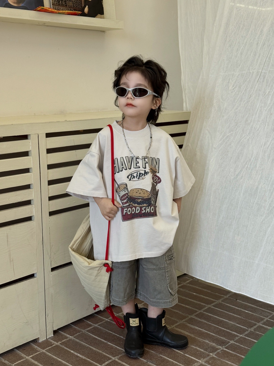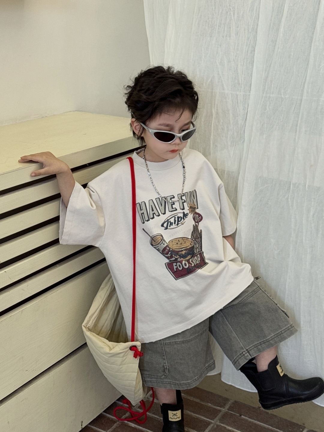 아동복 아동용 티셔츠 2025 새로운 여름 짧은 소매 탑 둥근 목 인쇄 된 소년의 트렌디 한 멋진 서양식 반소매스토어 가기