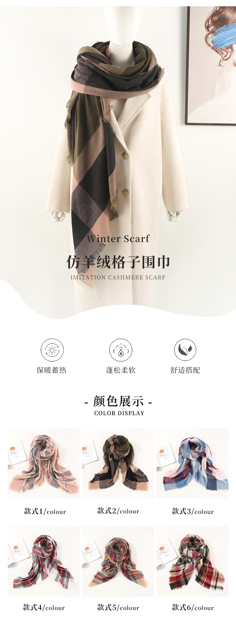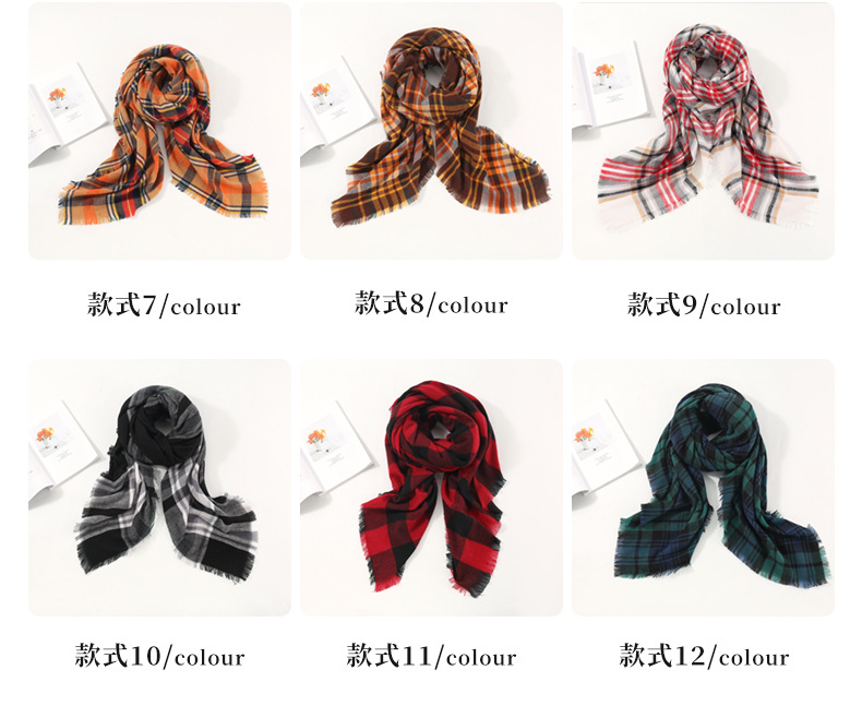 经典彩色格子小流苏140大方巾女 气质好搭仿羊绒披肩保暖围巾批发스토어 가기