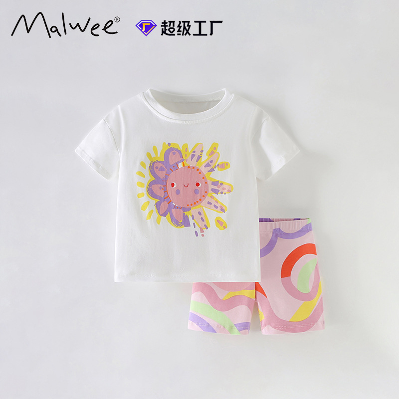 국경 간 말위 소녀 세트 여름 새로운 유럽과 미국 어린이 서양식 라운드 넥 짧은 소매 캐주얼 투피스 세트