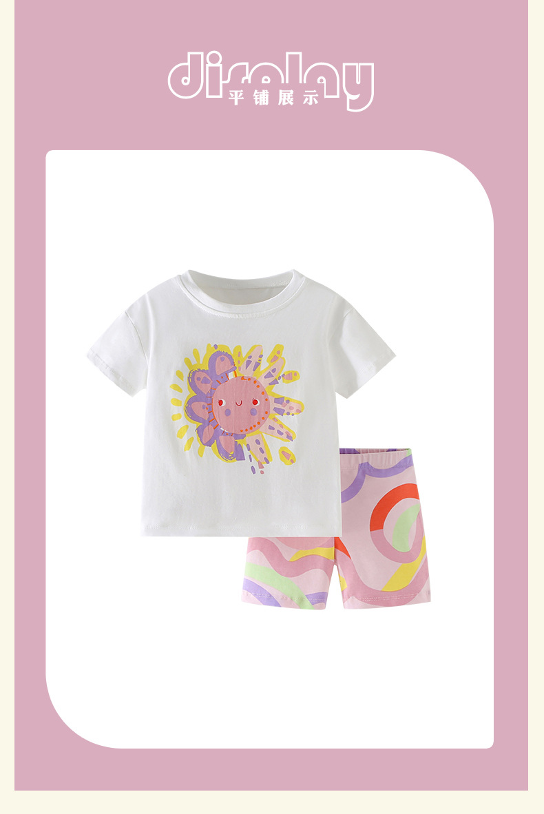 국경 간 말위 소녀 세트 여름 새로운 유럽과 미국 어린이 서양식 라운드 넥 짧은 소매 캐주얼 투피스 세트스토어 가기
