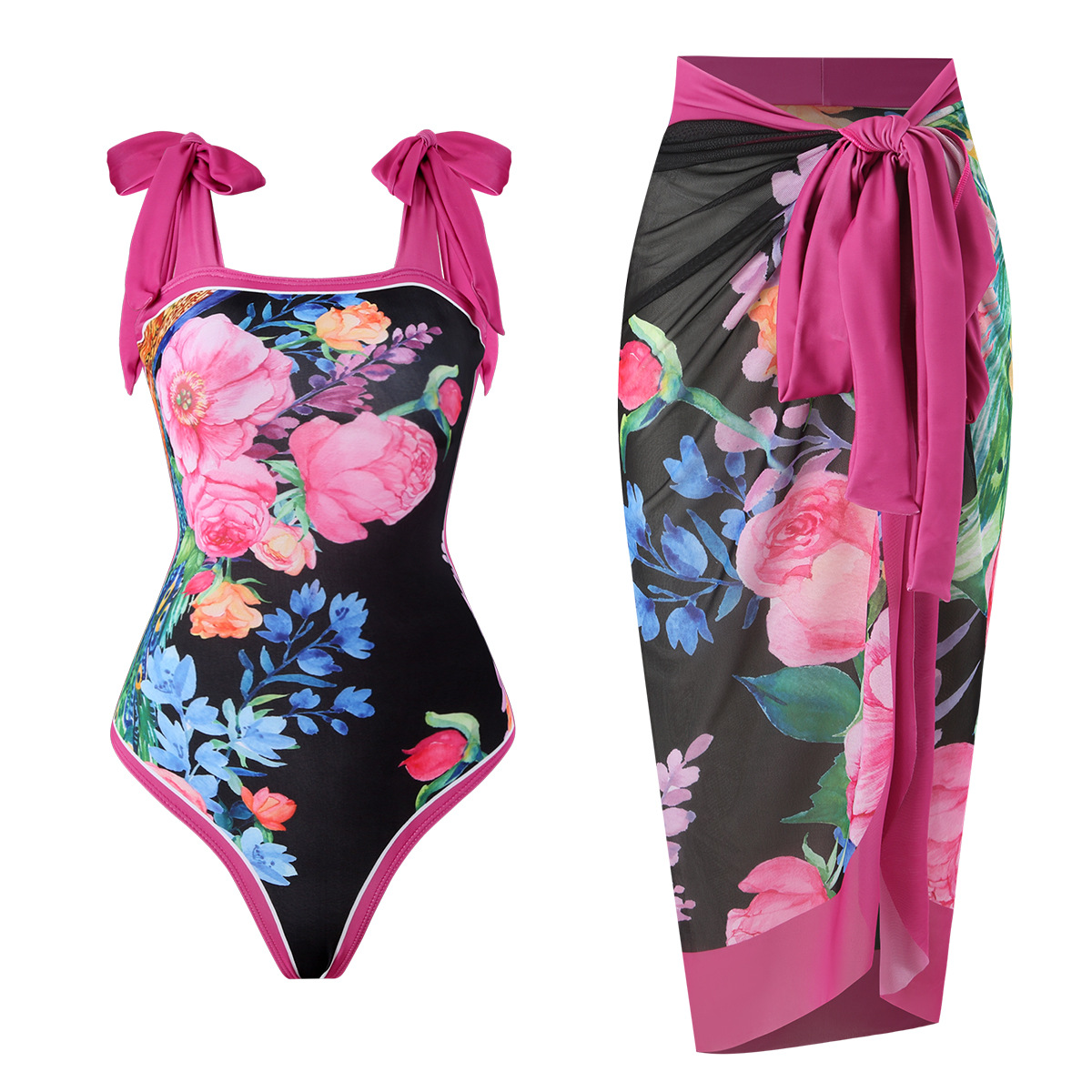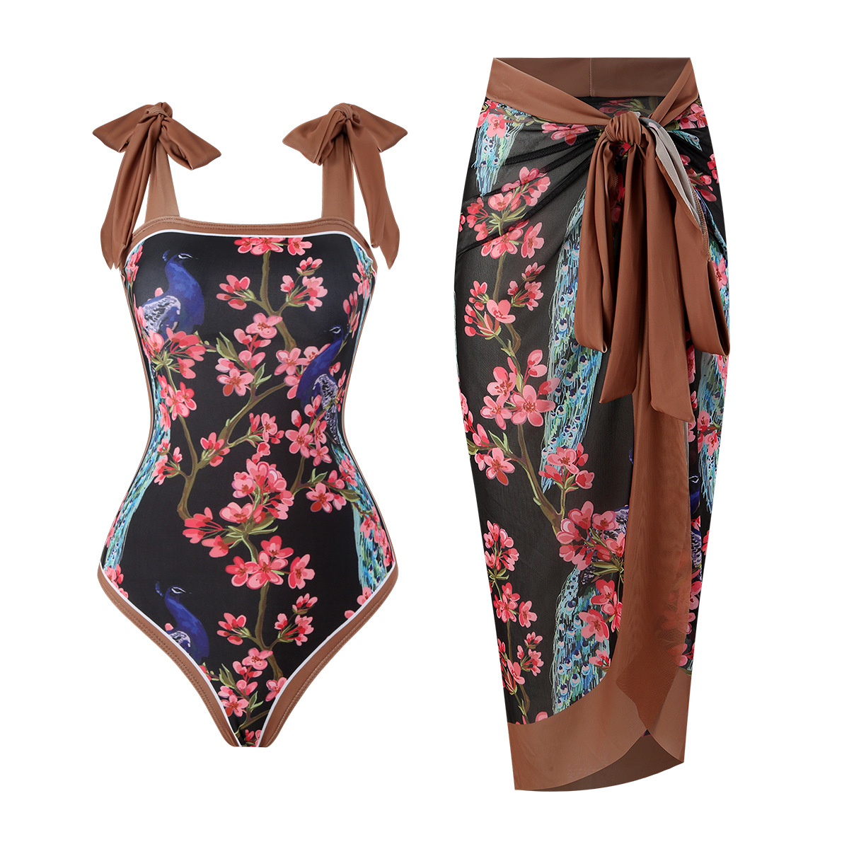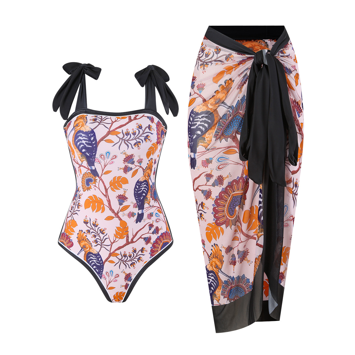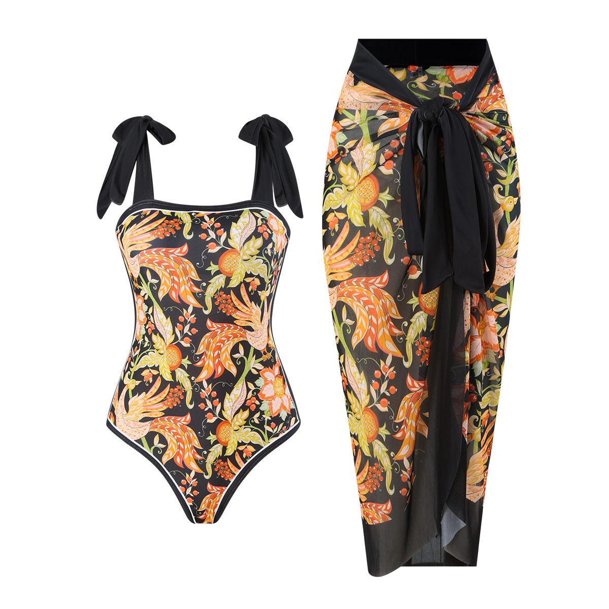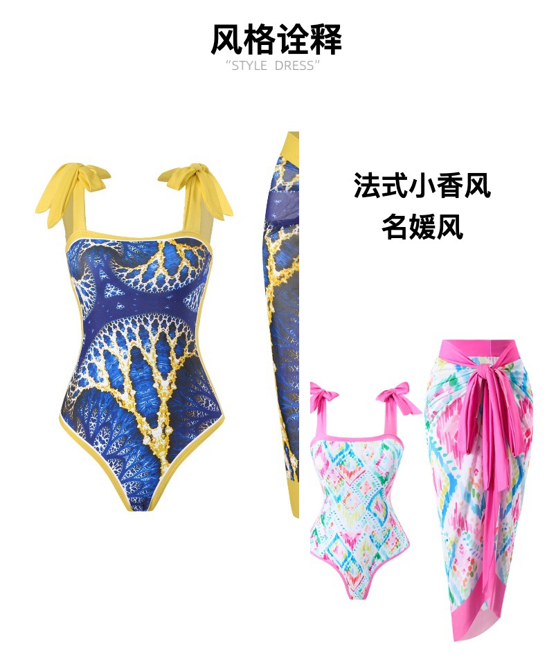 아마존의 새로운 원피스 수영복 멀티 컬러 프린트 힙 커버 거즈 스커트 노출 방지 투피스 여성용 자외선 차단 수영복