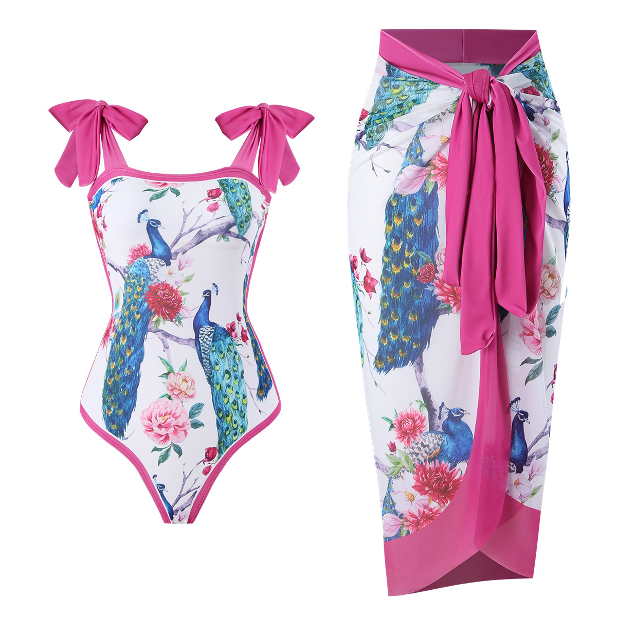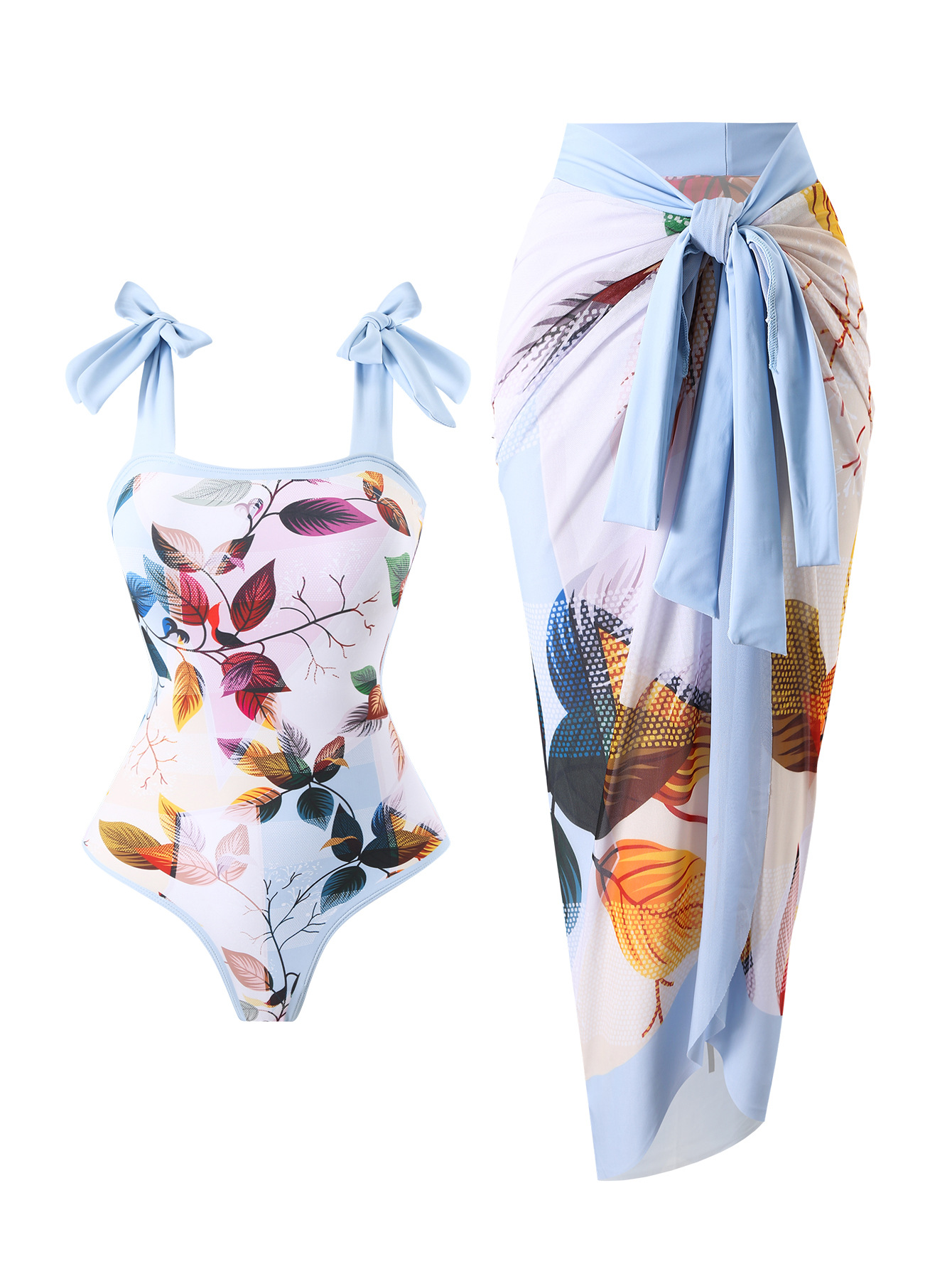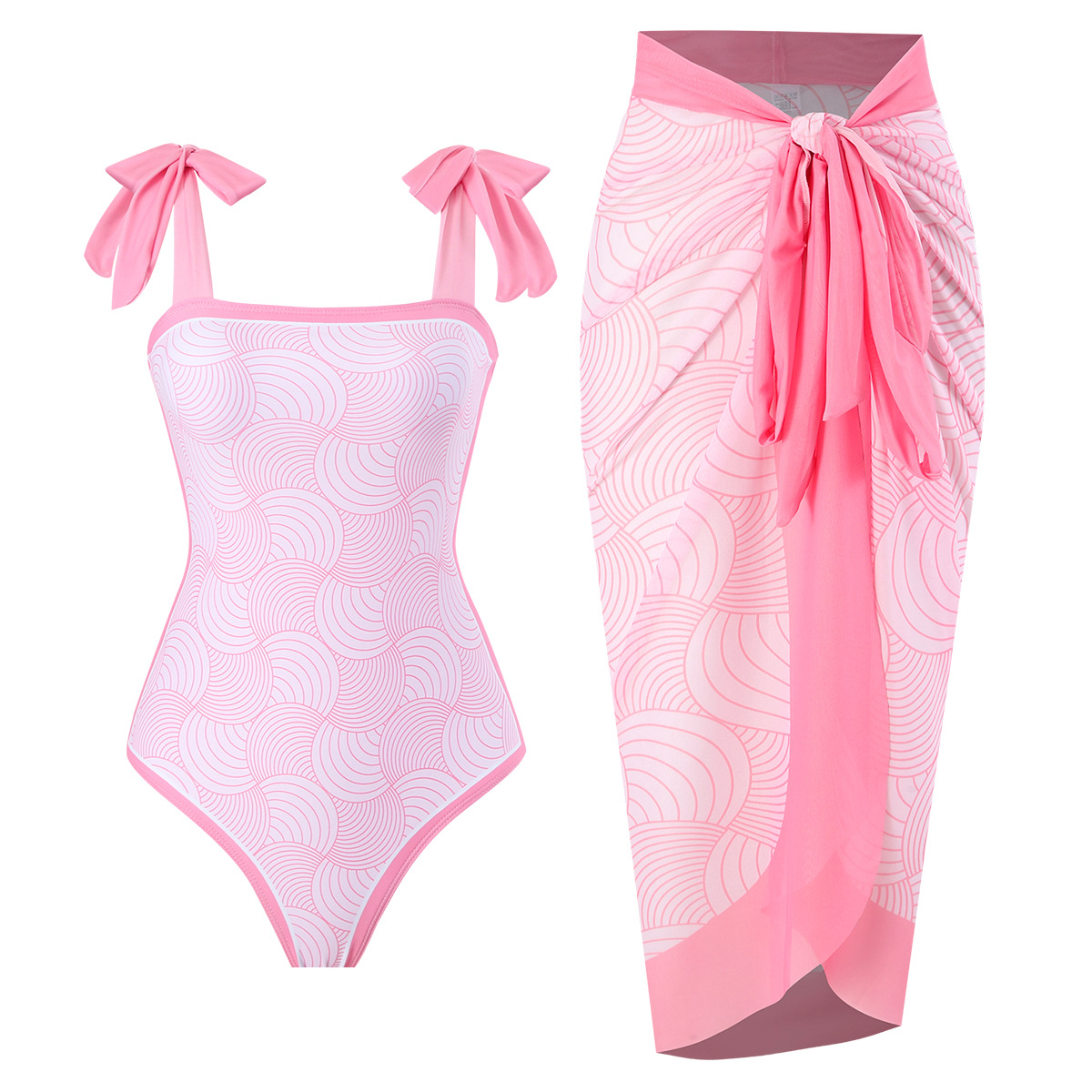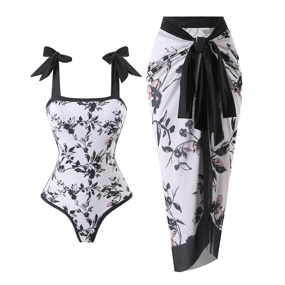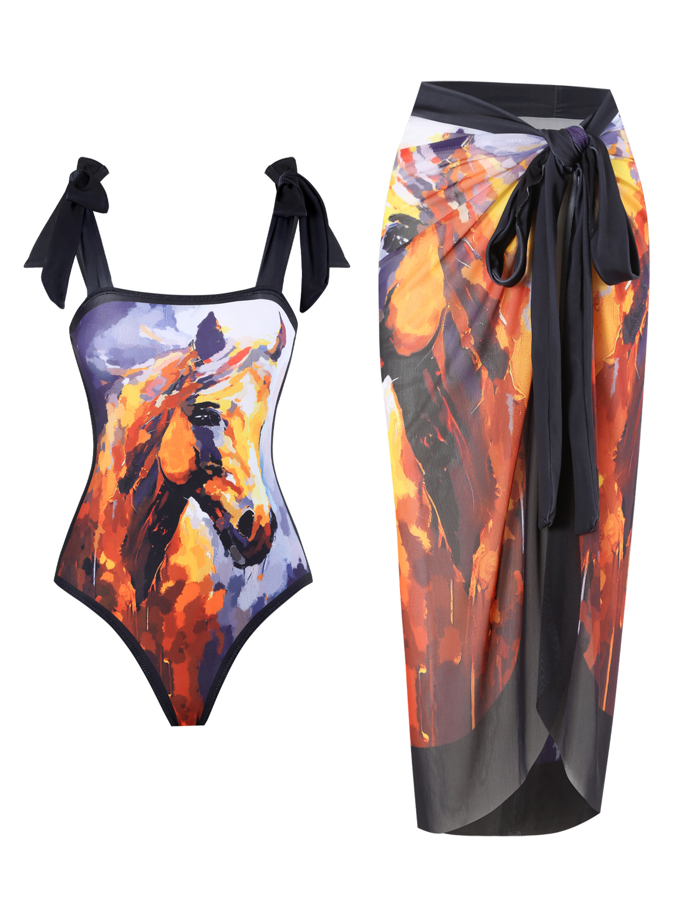 아마존의 새로운 원피스 수영복 멀티 컬러 프린트 힙 커버 거즈 스커트 노출 방지 투피스 여성용 자외선 차단 수영복