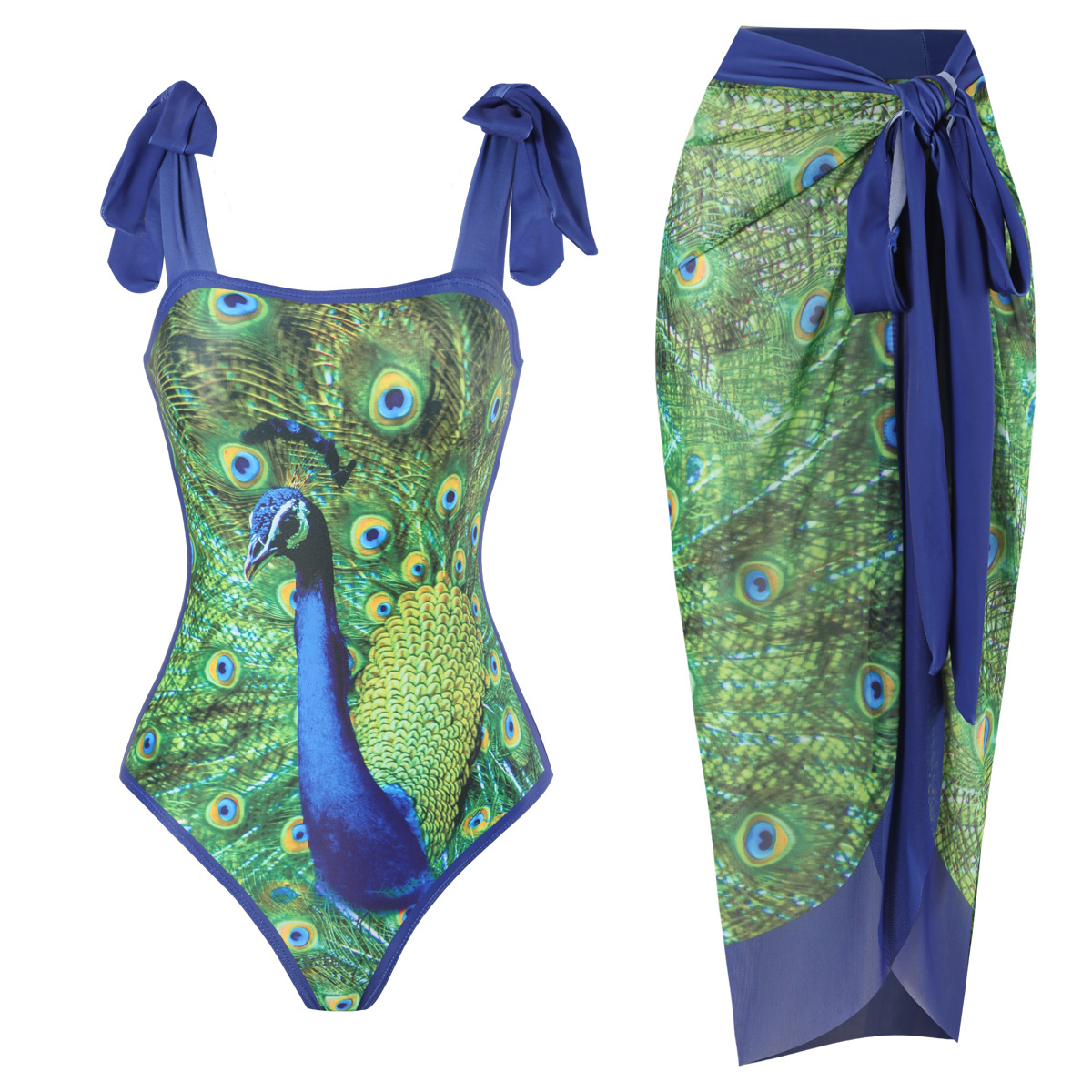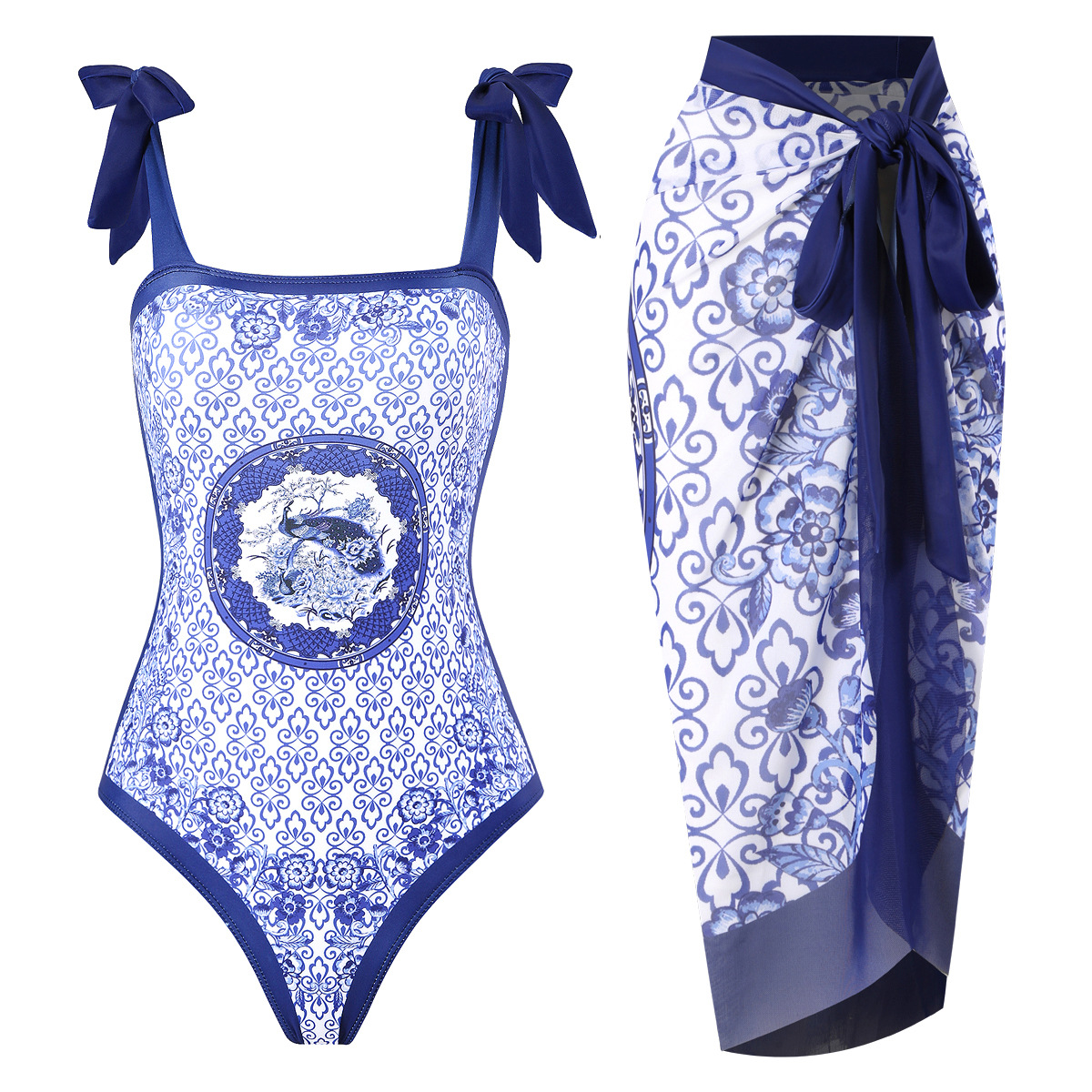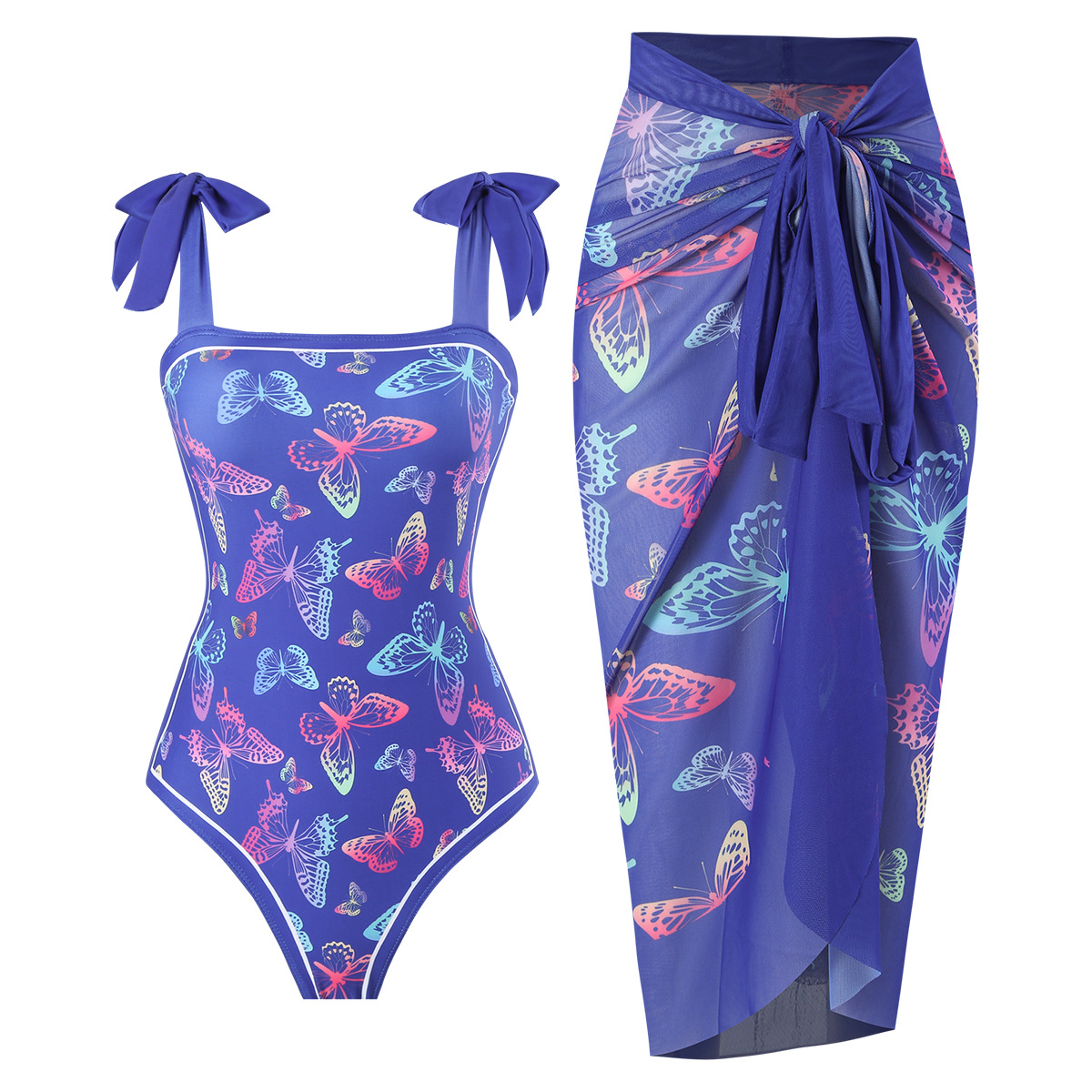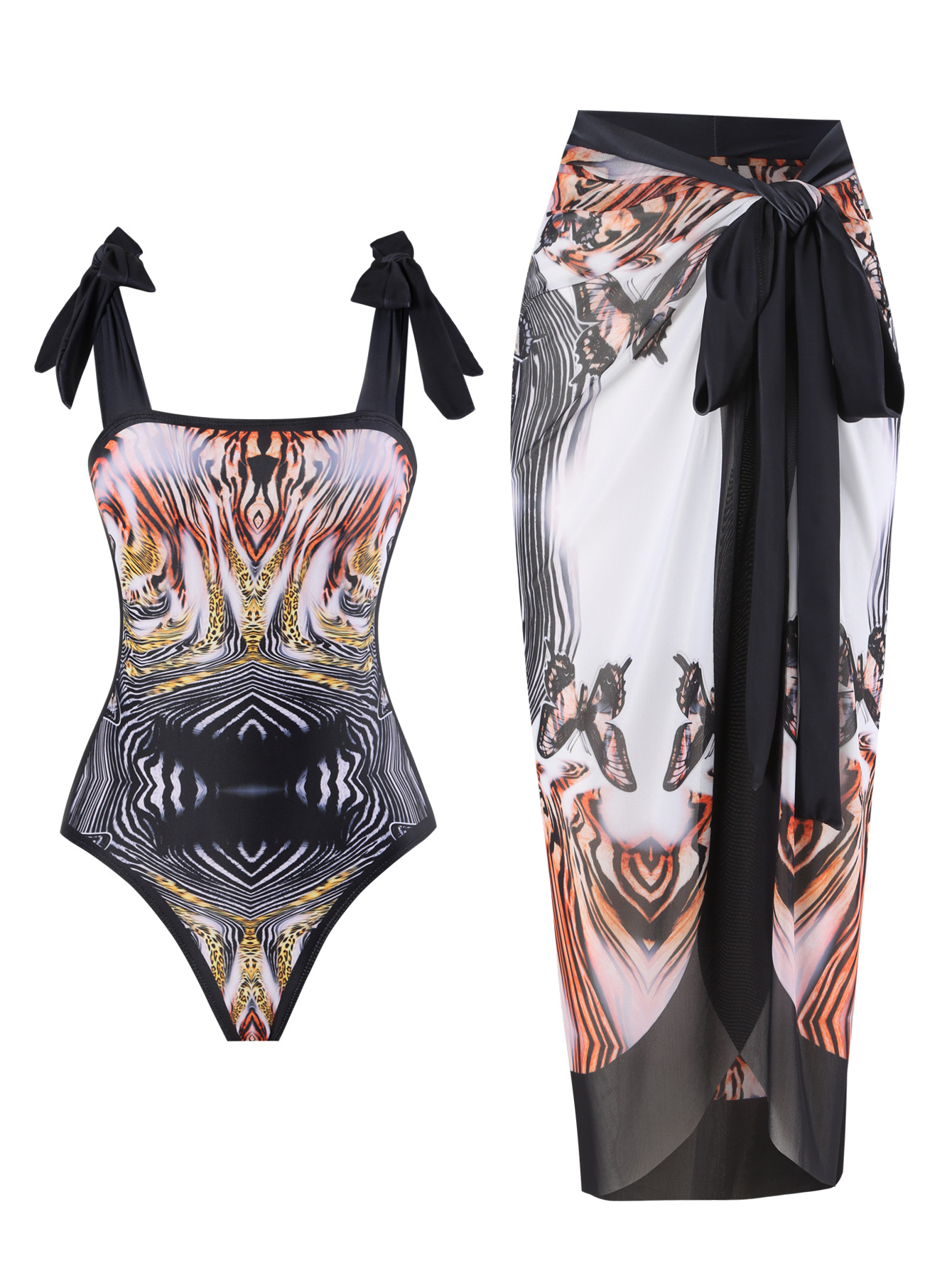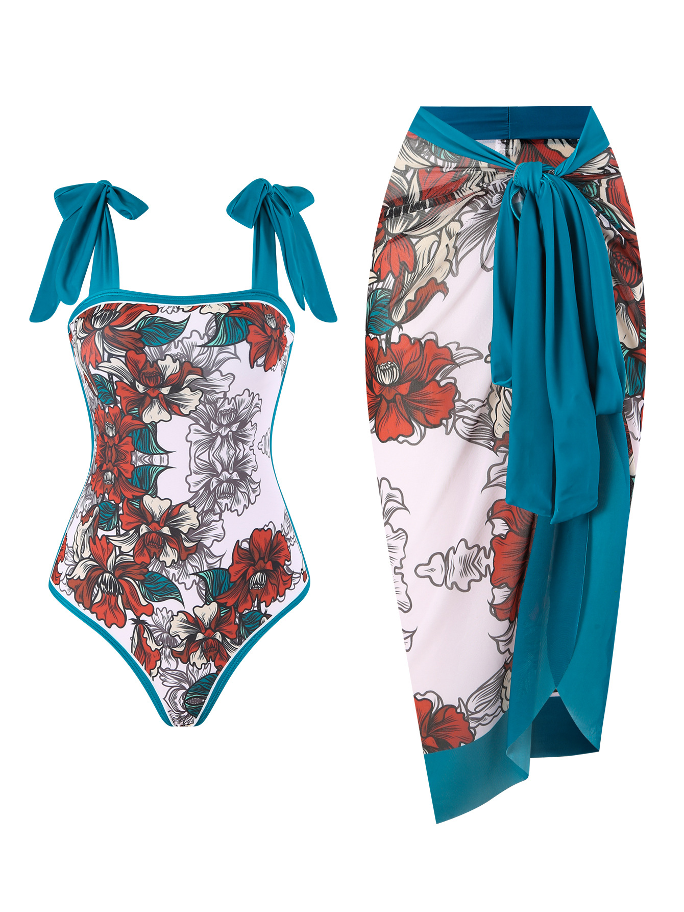아마존의 새로운 원피스 수영복 멀티 컬러 프린트 힙 커버 거즈 스커트 노출 방지 투피스 여성용 자외선 차단 수영복
