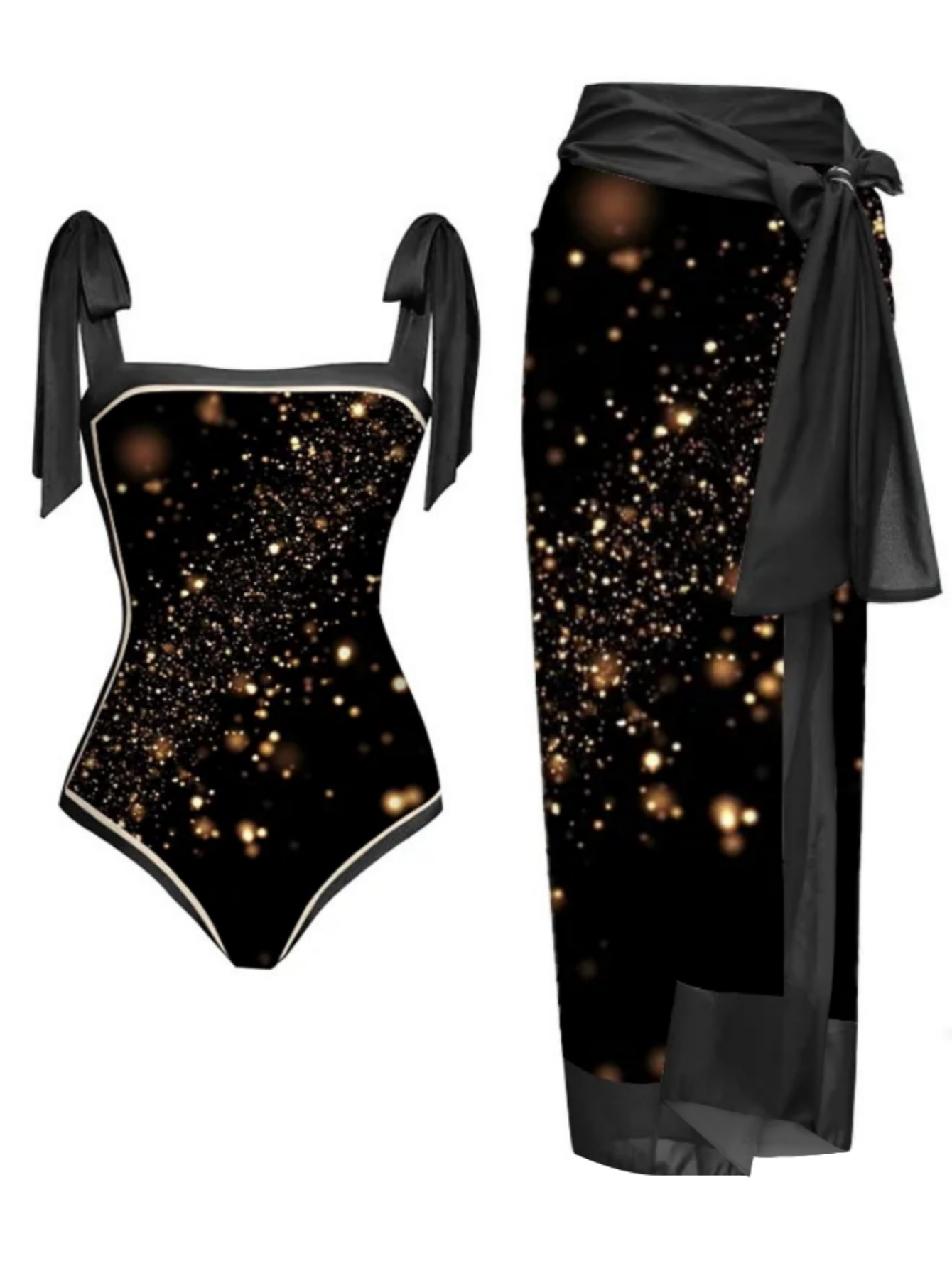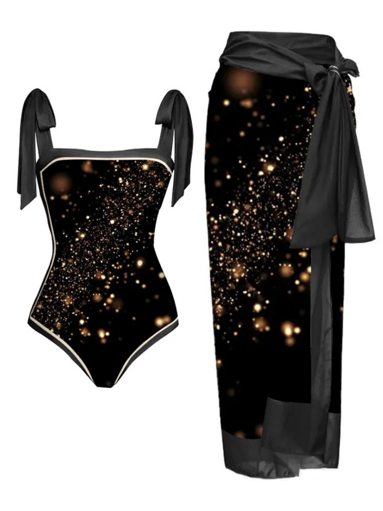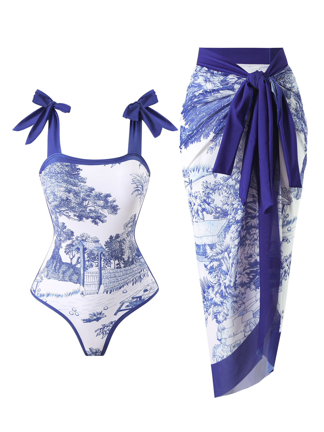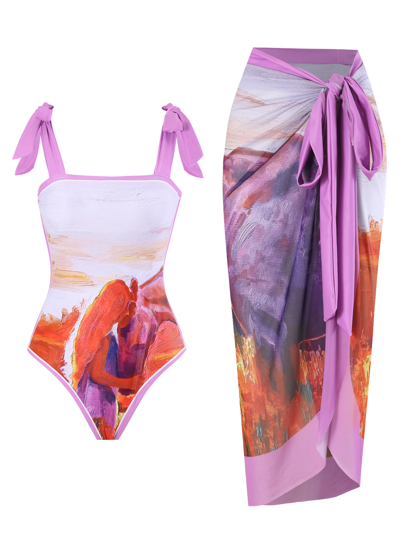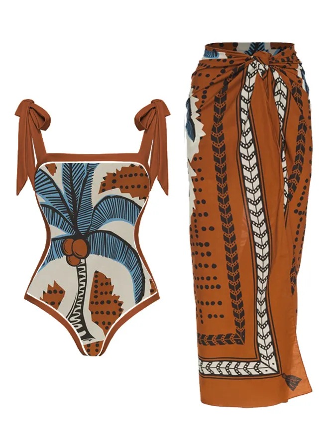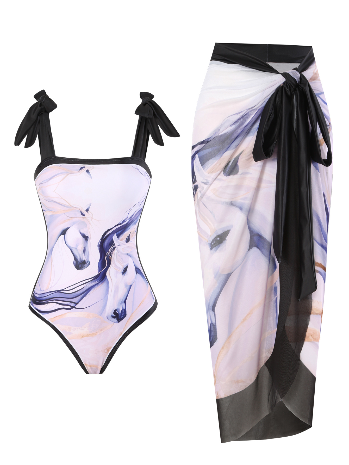 아마존의 새로운 원피스 수영복 멀티 컬러 프린트 힙 커버 거즈 스커트 노출 방지 투피스 여성용 자외선 차단 수영복