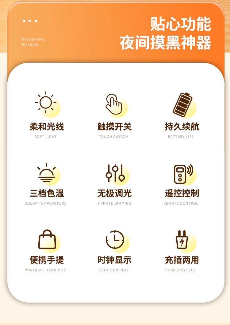 • 다채로운 디밍 [리모컨이 있는 충전식 모델] 시계 포함