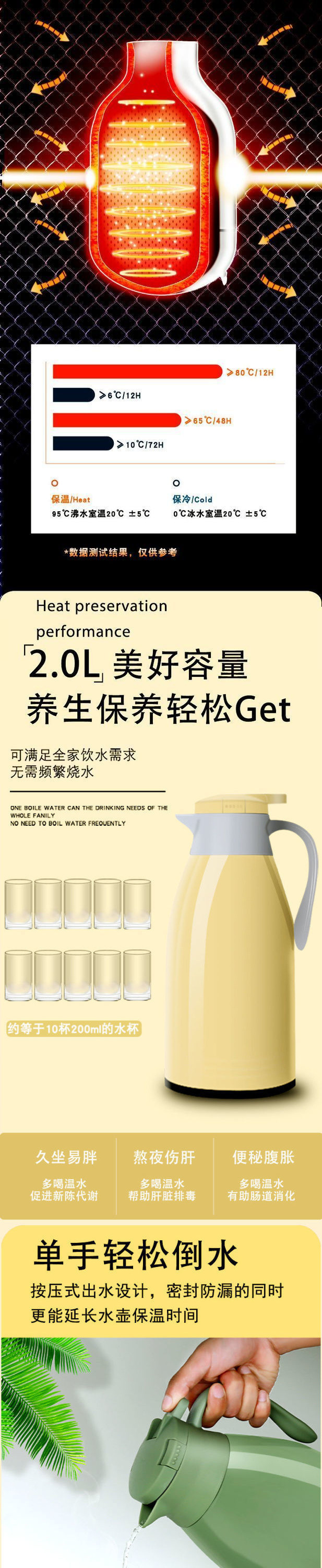단열 주전자 가정용 병 뜨거운 물병 유리 라이너 따뜻한 물 가정용 대용량 보온병 휴대용 보온병 병스토어 가기