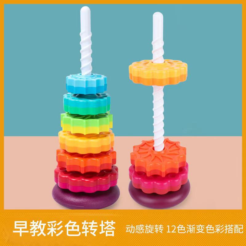 어린이 Jenga 조기 교육 장난감 무지개 회전 타워 링 1-2 세 유아 Jenga 회전 타워 장난감스토어 가기