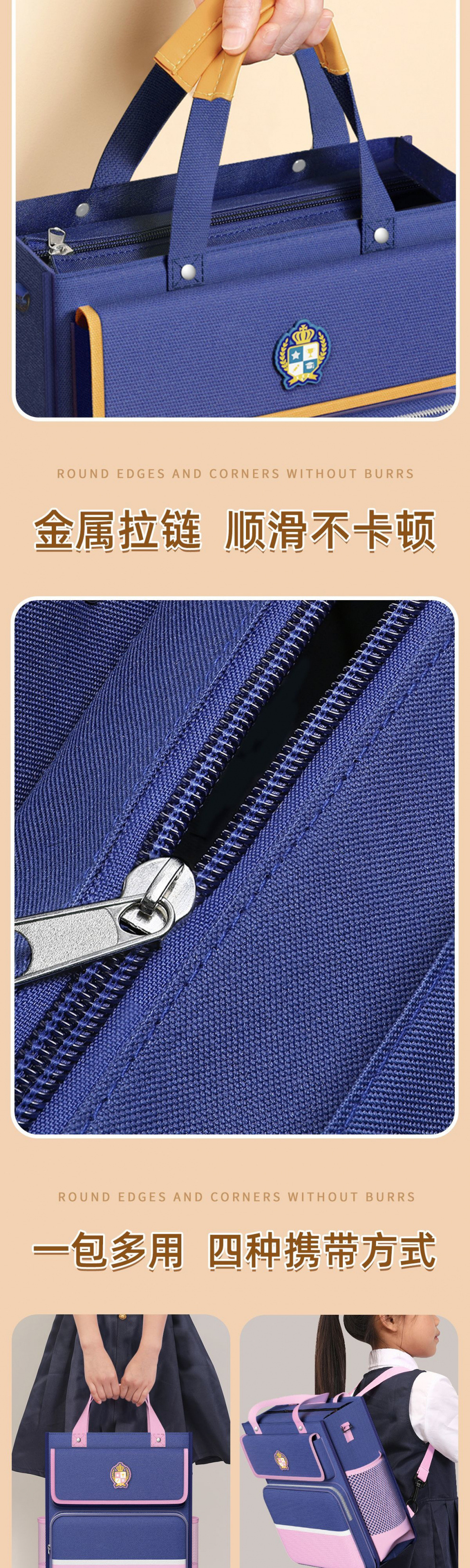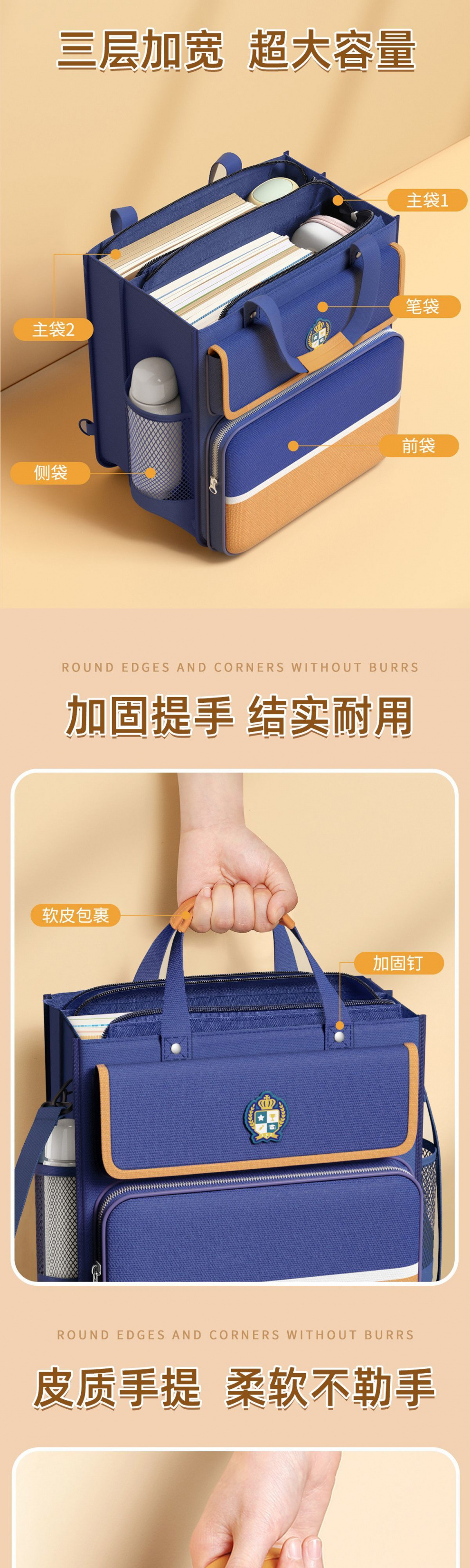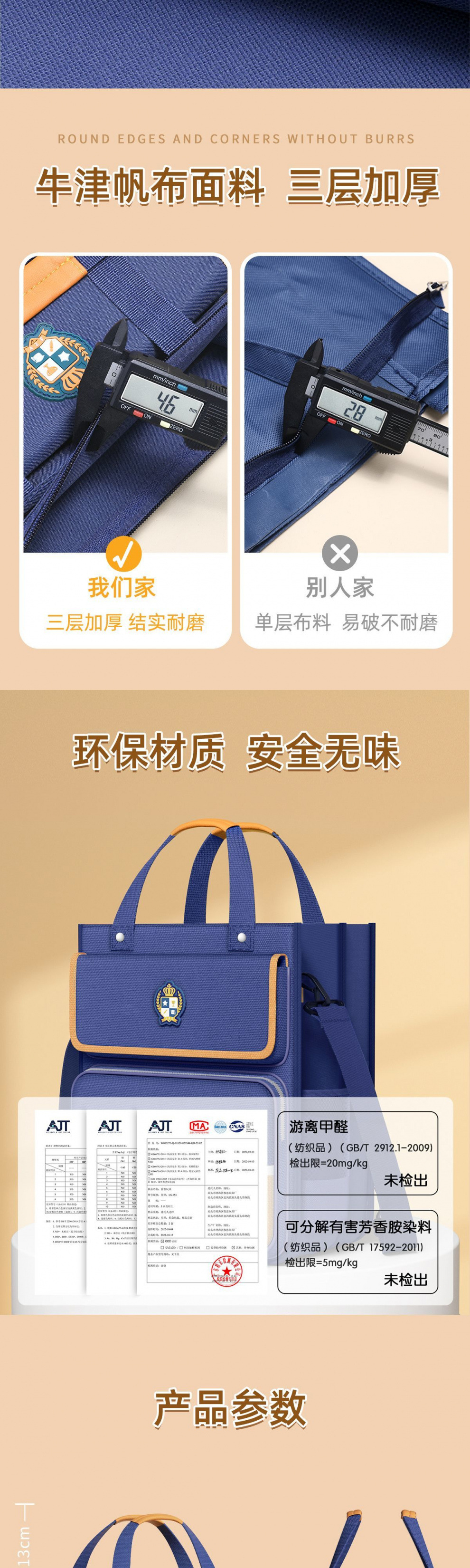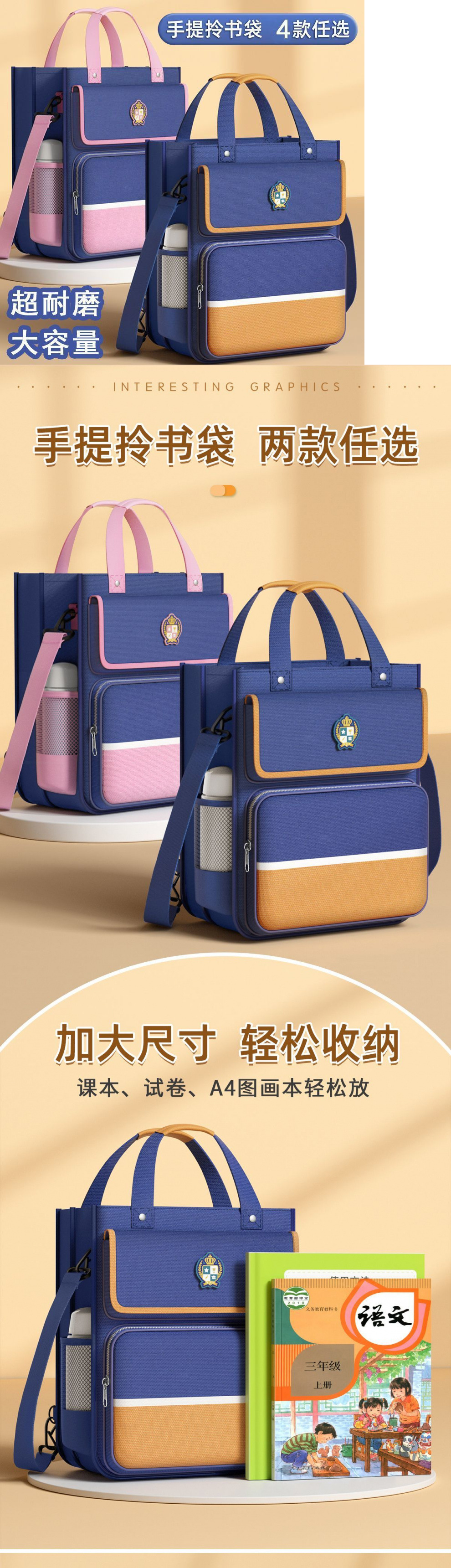골든 브랜치 리프 학생 휴대용 틸팅 백 휴대용 책 가방 어린이 영국 스타일 멀티 레이어 대형스토어 가기
