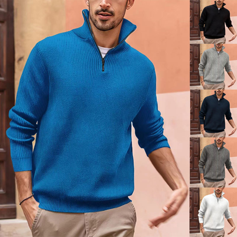 2023년 대외 무역을 위한 특별한 크로스보더 스웨터 새로운 남성 캐주얼 패션 지퍼 스탠드 칼라 바닥 스웨터 재고 있음스토어 가기