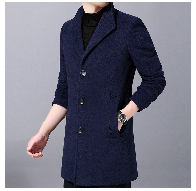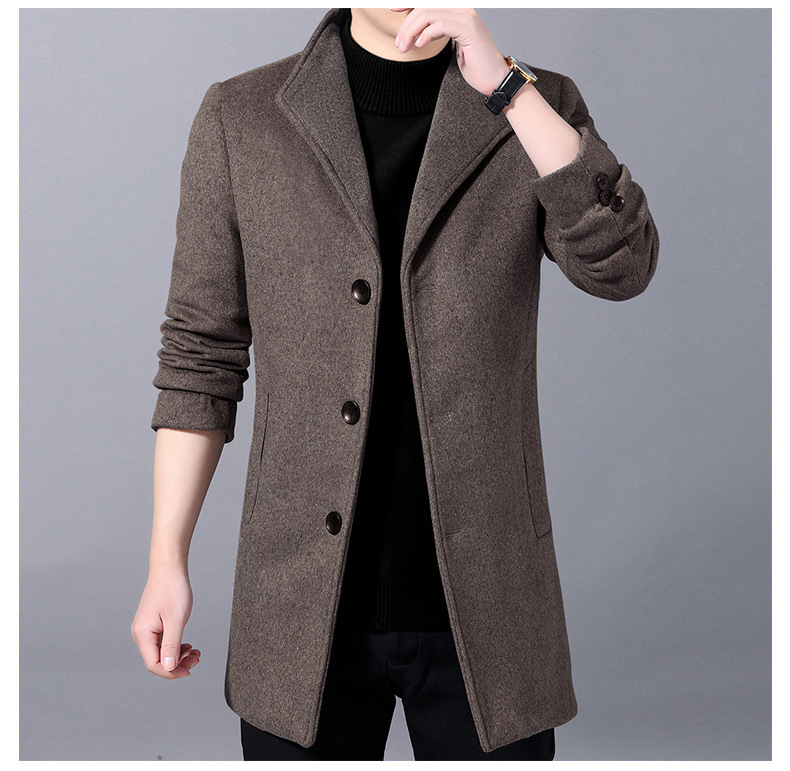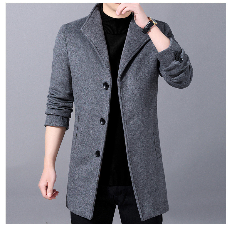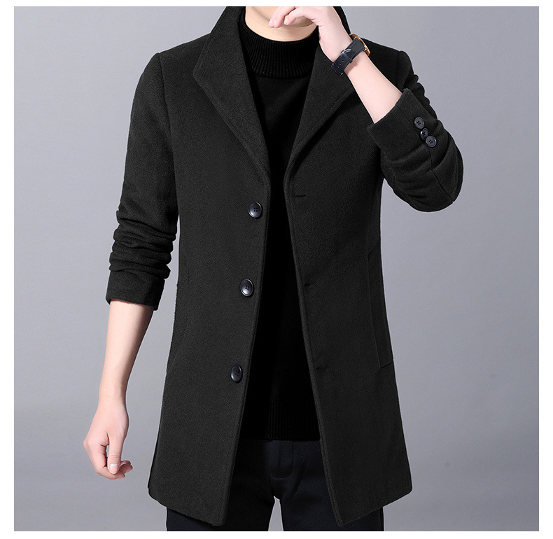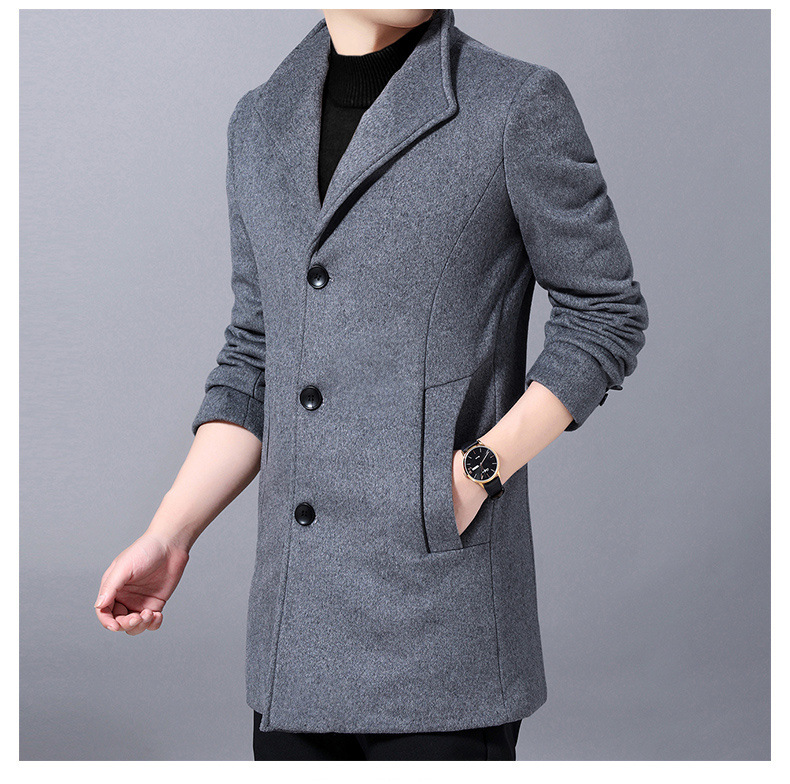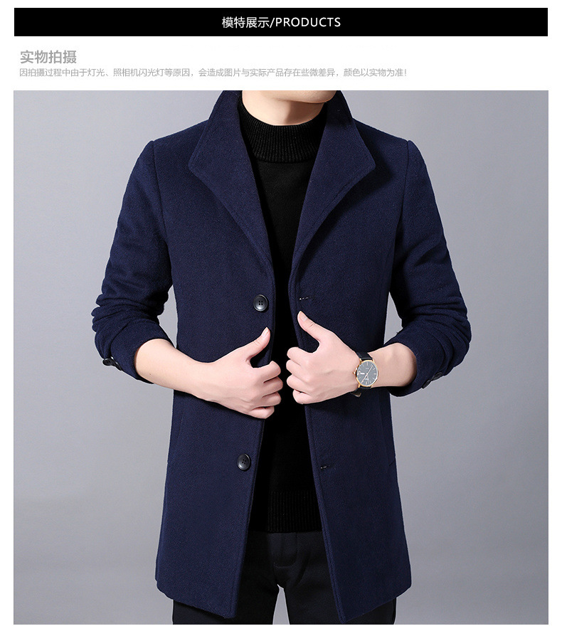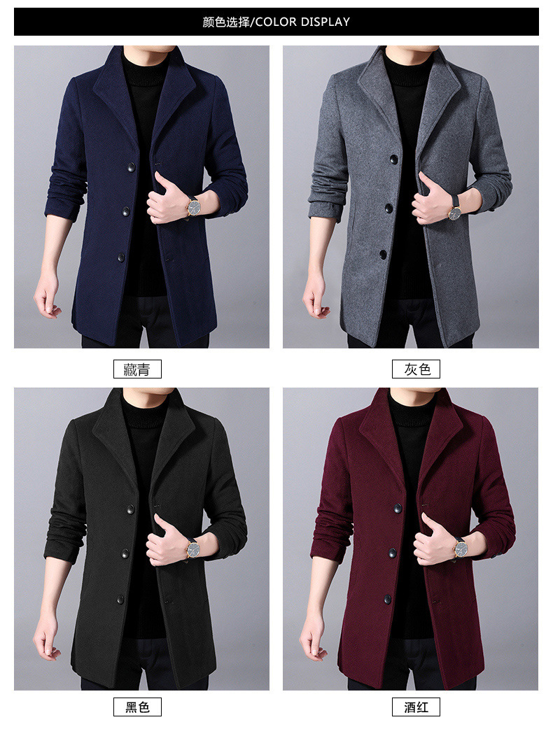 冬季毛呢大衣男中长款过膝西装领单排扣呢子风衣外套加厚潮流男装스토어 가기