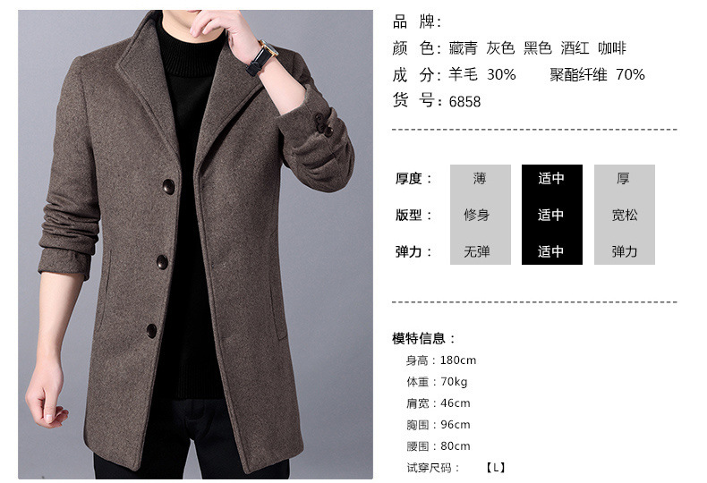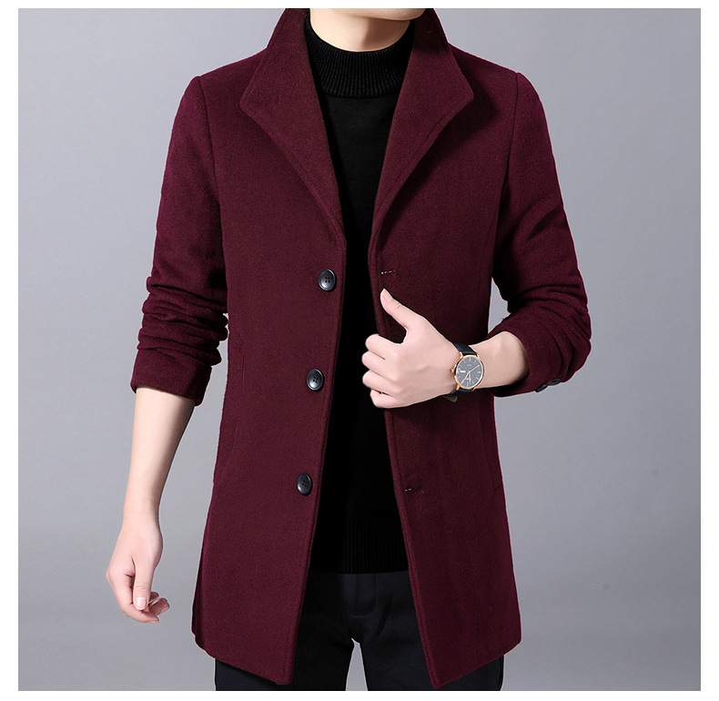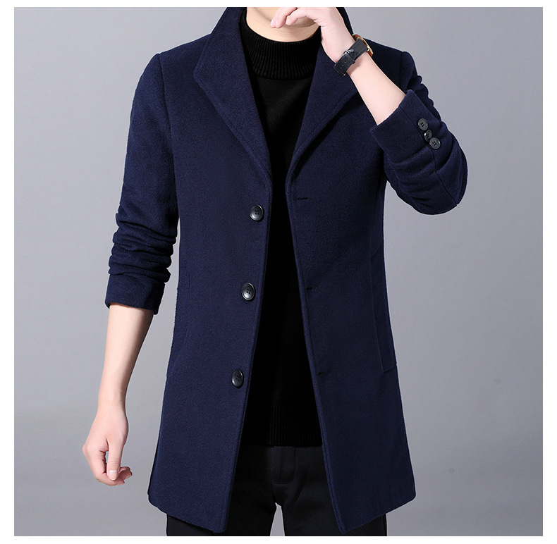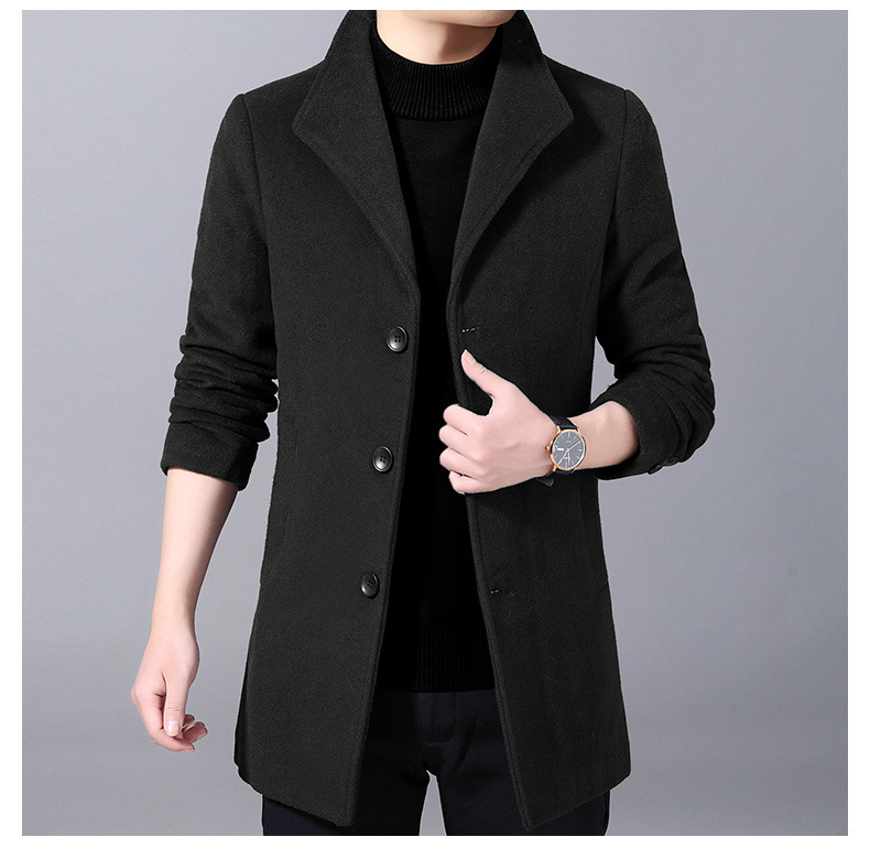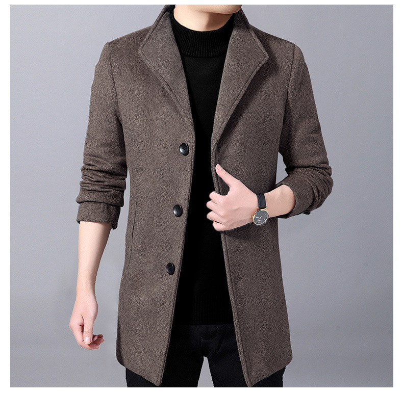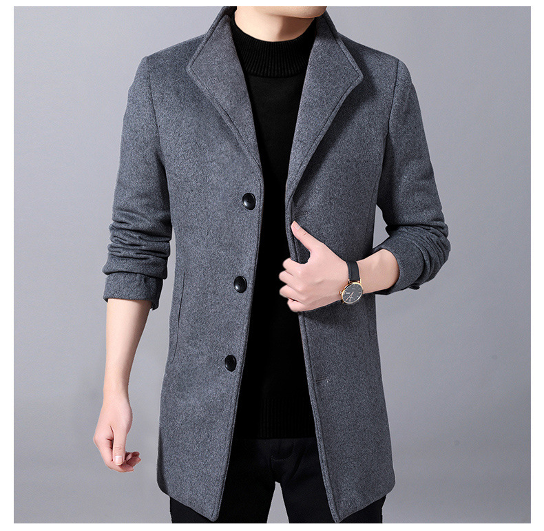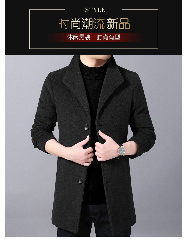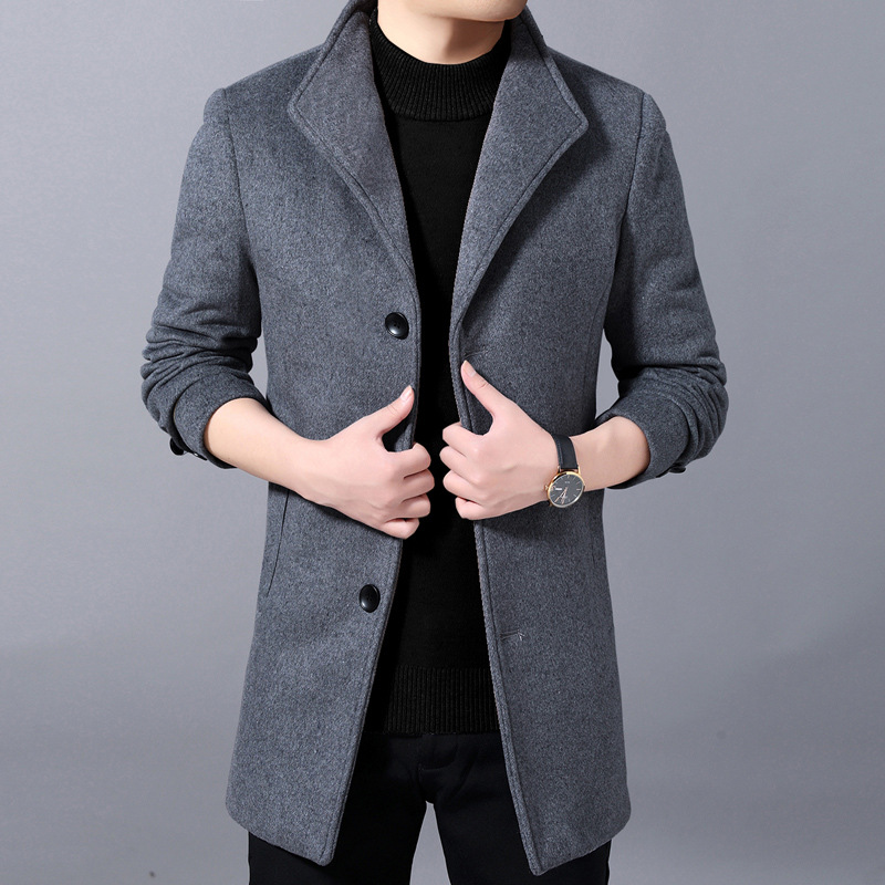 冬季毛呢大衣男中长款过膝西装领单排扣呢子风衣外套加厚潮流男装스토어 가기