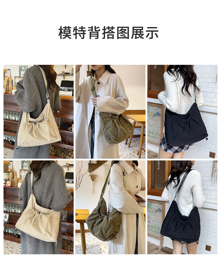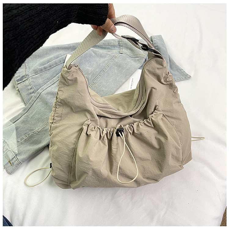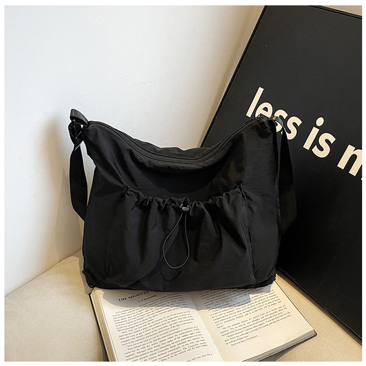 한국식 틈새 트렌디 백 캐주얼 올 매치 드로우 스트링 경량 나일론 헝겊 가방 대용량 어깨 크로스 바디 토트 백