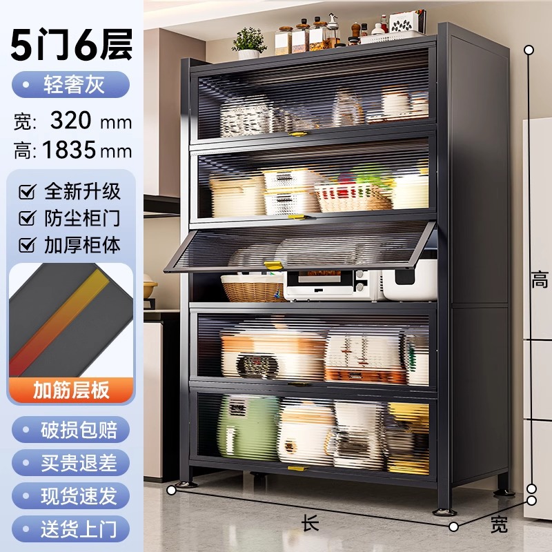 주방 보관 랙 바닥 서 다층 보관 캐비닛 전자 레인지 다기능 캐비닛 도어 방진 보관 캐비닛스토어 가기