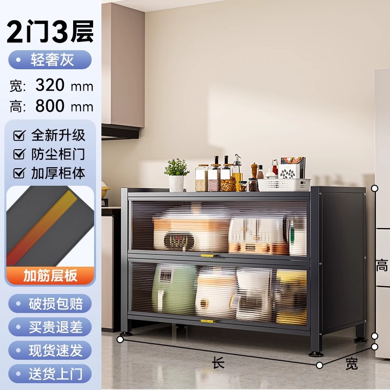 주방 보관 랙 바닥 서 다층 보관 캐비닛 전자 레인지 다기능 캐비닛 도어 방진 보관 캐비닛