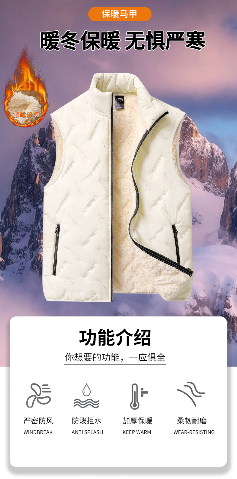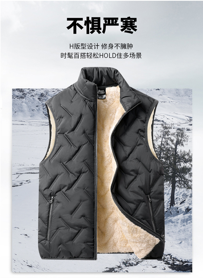 가을 겨울 스탠드업 칼라 벨벳 조끼는 따뜻하고 다재다능하며 방풍 및 내한성, 두껍고 온도를 유지하며 비즈니스 피부 친화적이며 부드럽고 보풀이 없습니다.스토어 가기