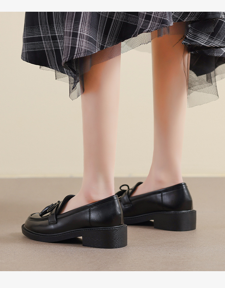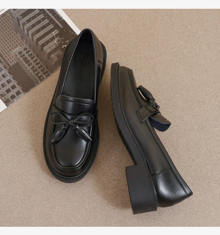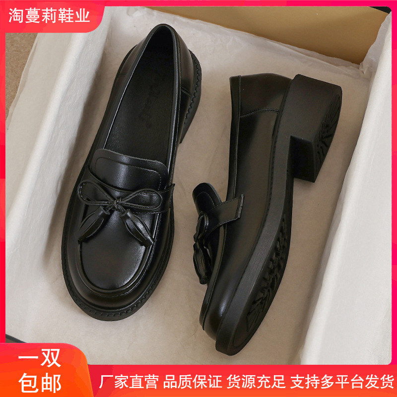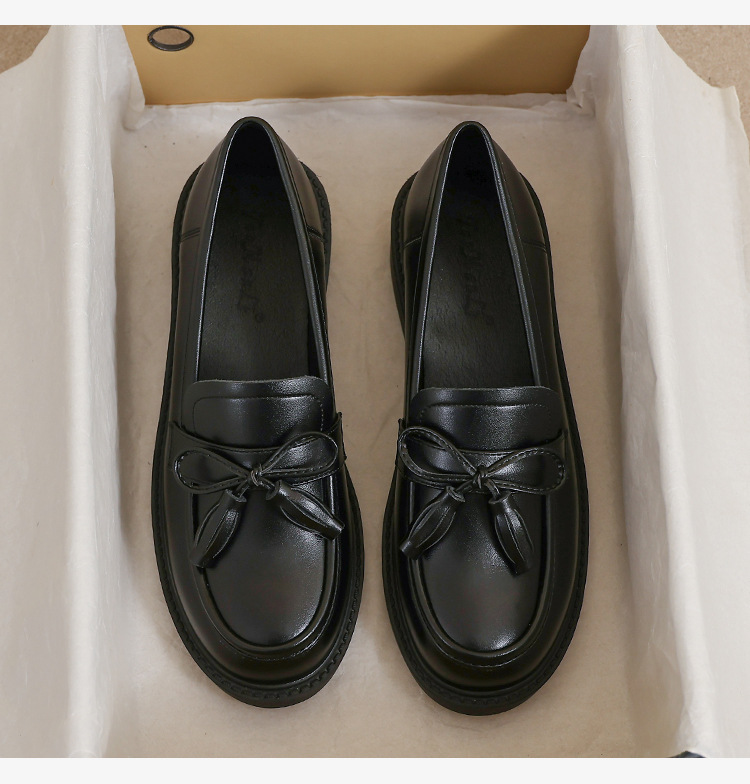 정품 가죽 신발 여성 2025 새로운 봄과 가을 영국 스타일 블랙 소프트 플러스 사이즈 41 콩 플랫 42 로퍼스토어 가기