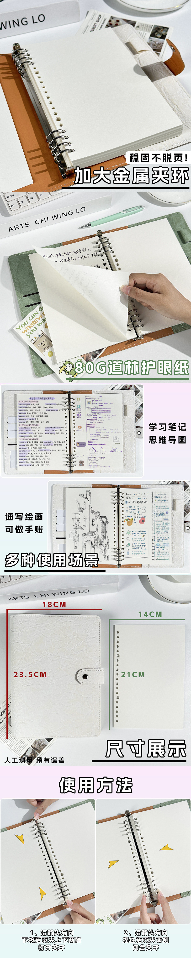 핸즈리스 a5 느슨한 잎 노트북 이동식 느슨한 잎 노트북 높은 가치 간단한 주름