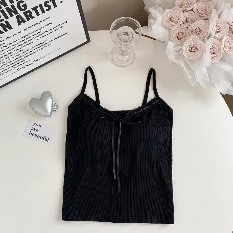 순수한 욕망 레이스 스트랩리스 조끼 여성 여름 달콤한 스파이스 소녀 활 슬림 핏 작은 스트랩 짧은 아름다운 백탑