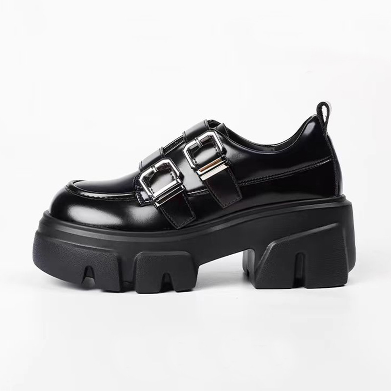 영국 스타일 여성용 가죽 신발 2026 봄 가을 신상 두꺼운 밑창 금속 버클 슬립온 레트로 메리제인 로퍼