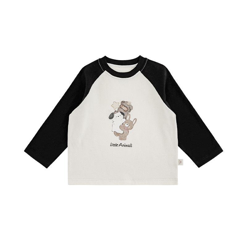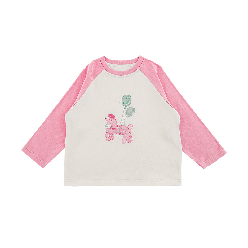 丘哆萌 2024秋季新款儿童卡通印花长袖T恤女童可爱撞色体恤打底衫