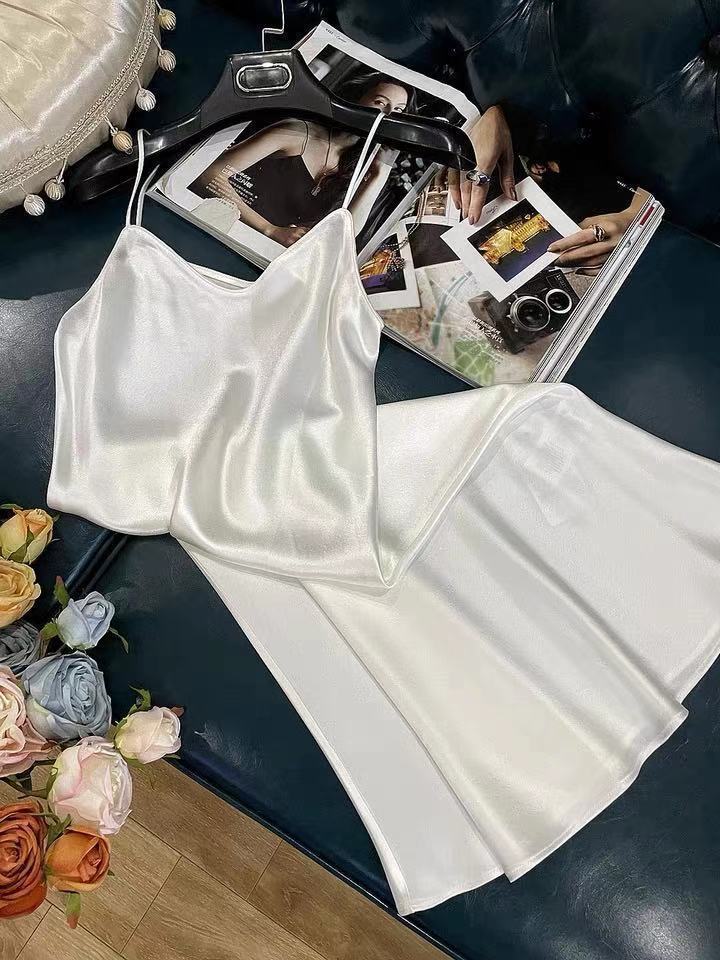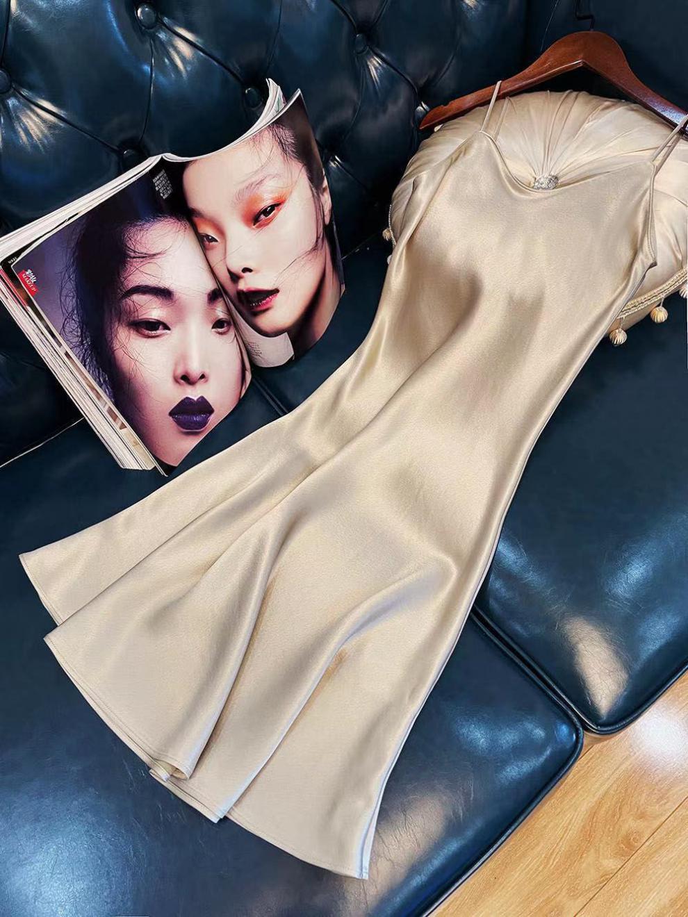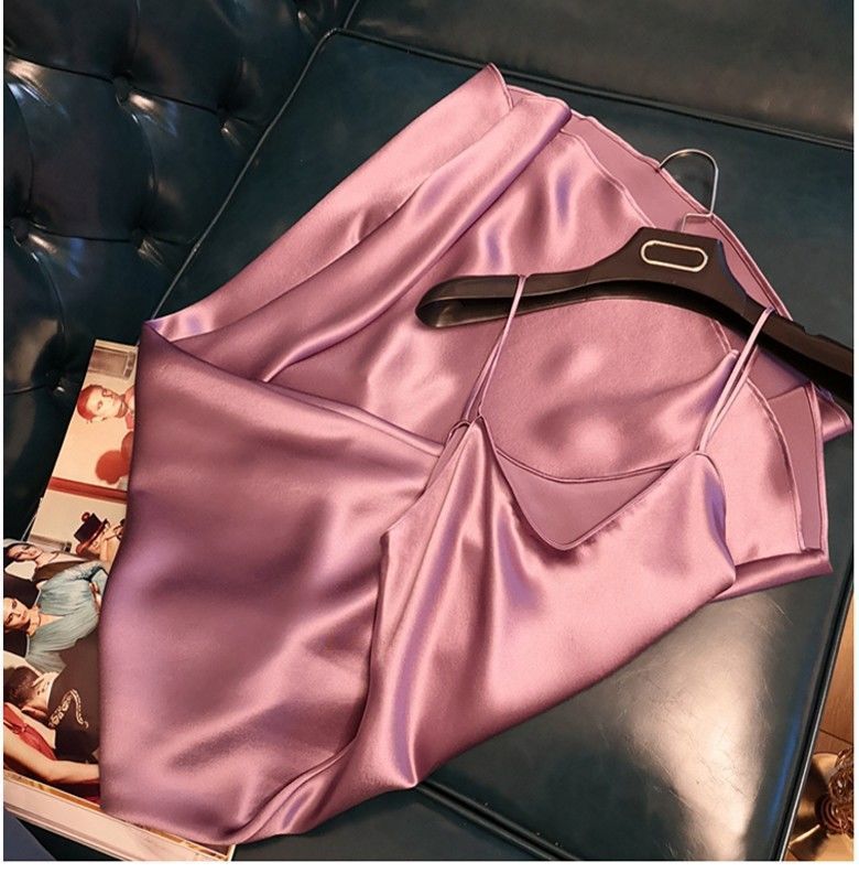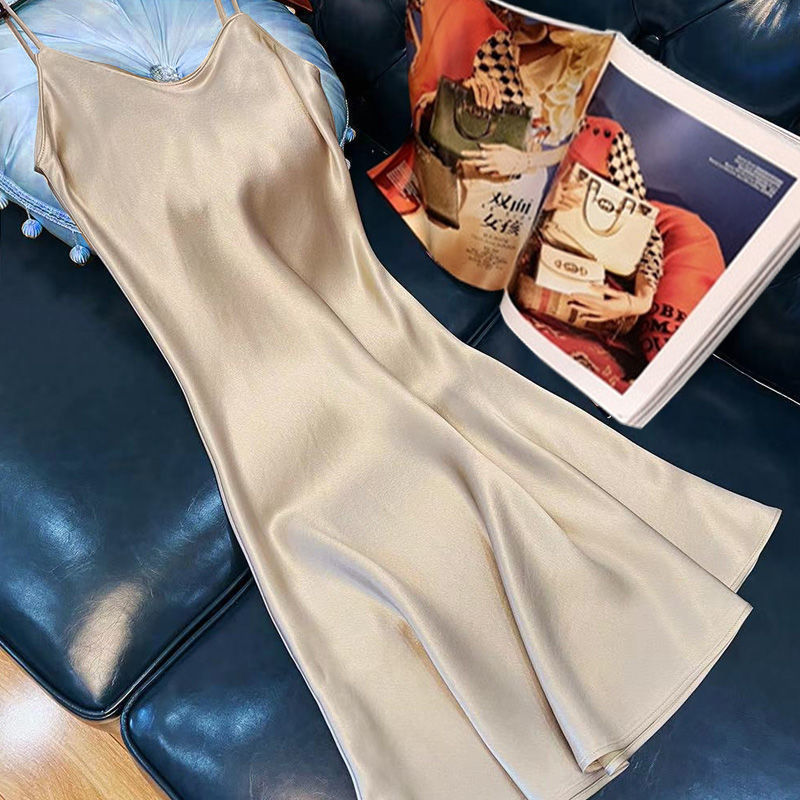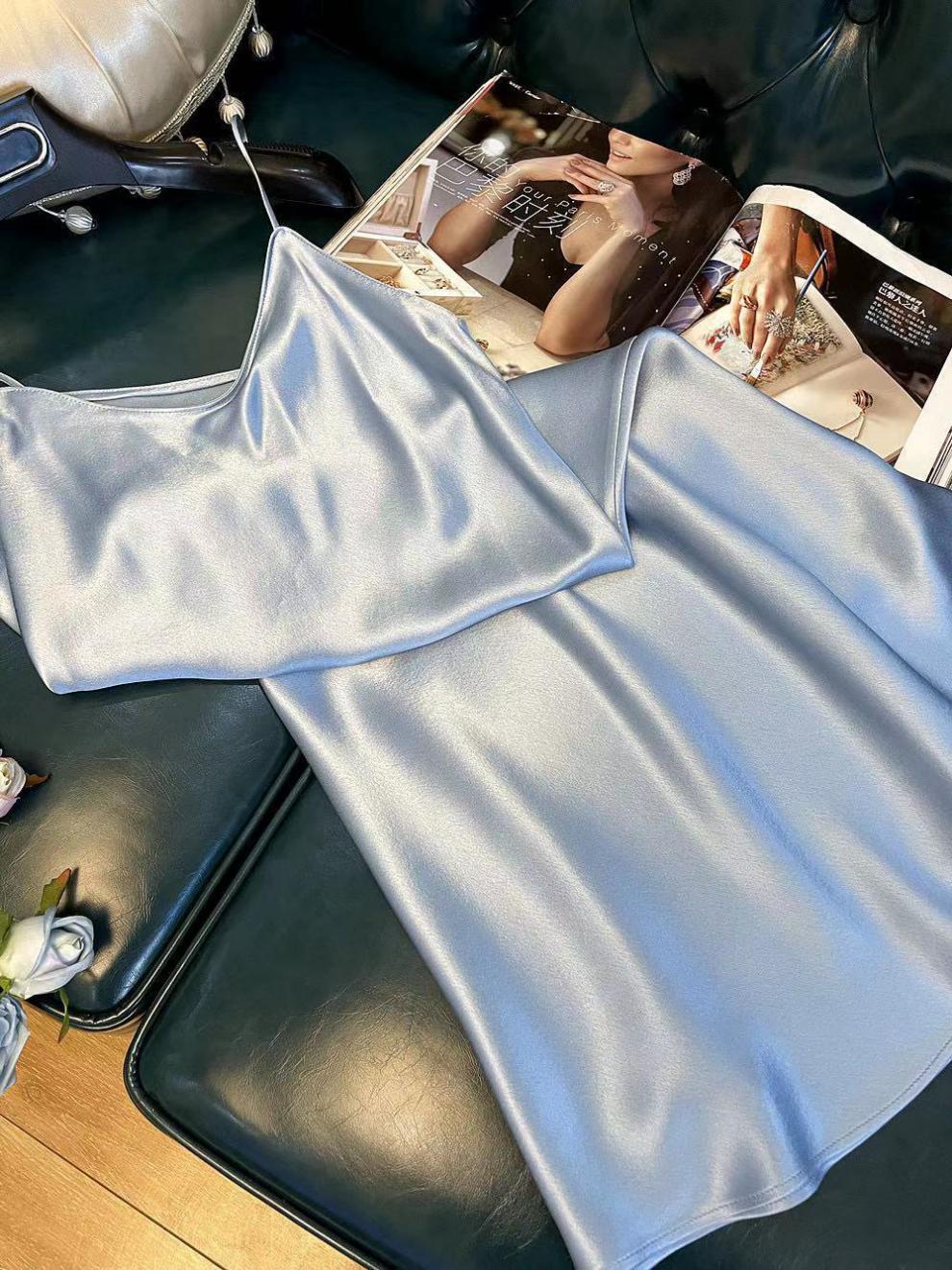 항저우 새틴 원피스 2021 인기 여름 새로운 모조 새틴 트라이아세트산 중장 서스펜더 A 라인 스커트 트렌드스토어 가기